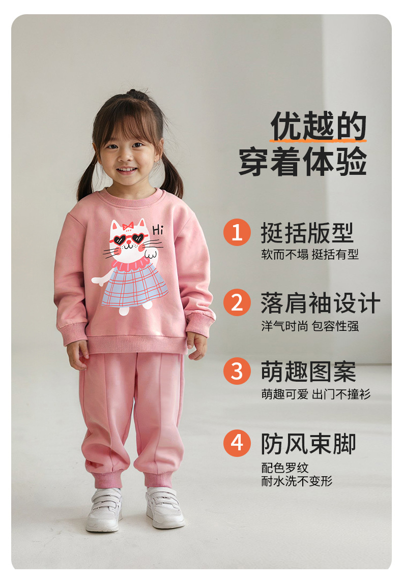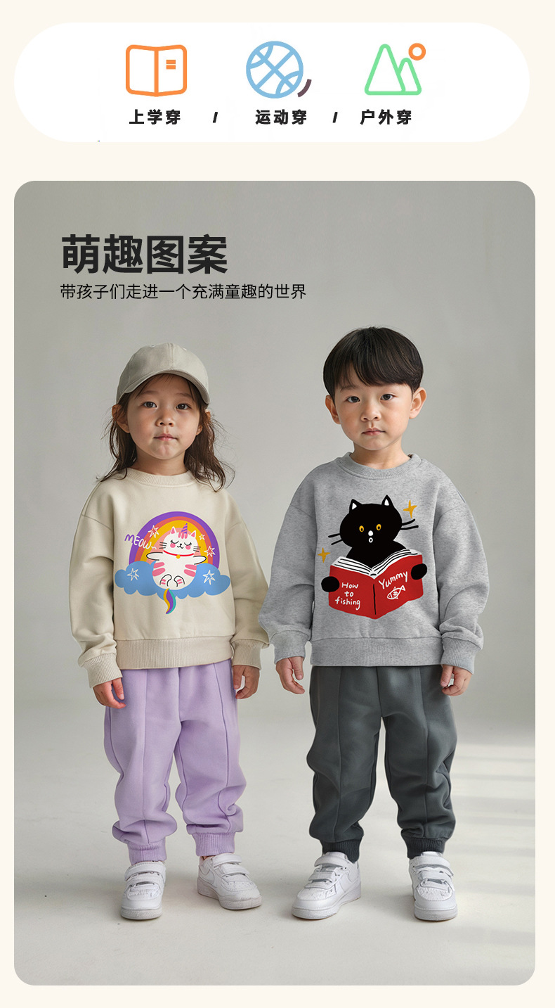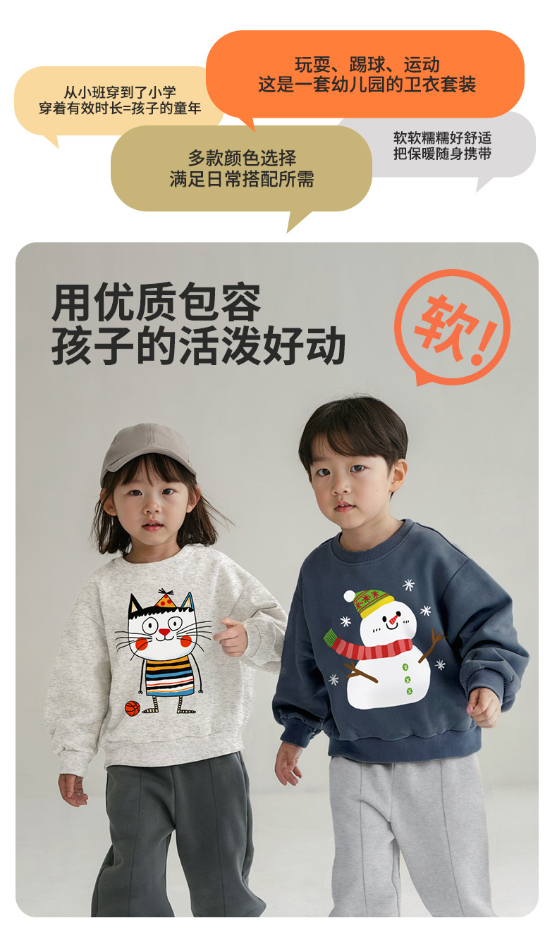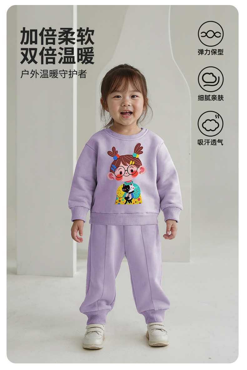 미니 존 어린이 가을과 겨울 기모 스웨트 셔츠 세트 만화 두꺼운 둥근 목 톱 소년 및 어린이 다리 스포츠 바지스토어 가기