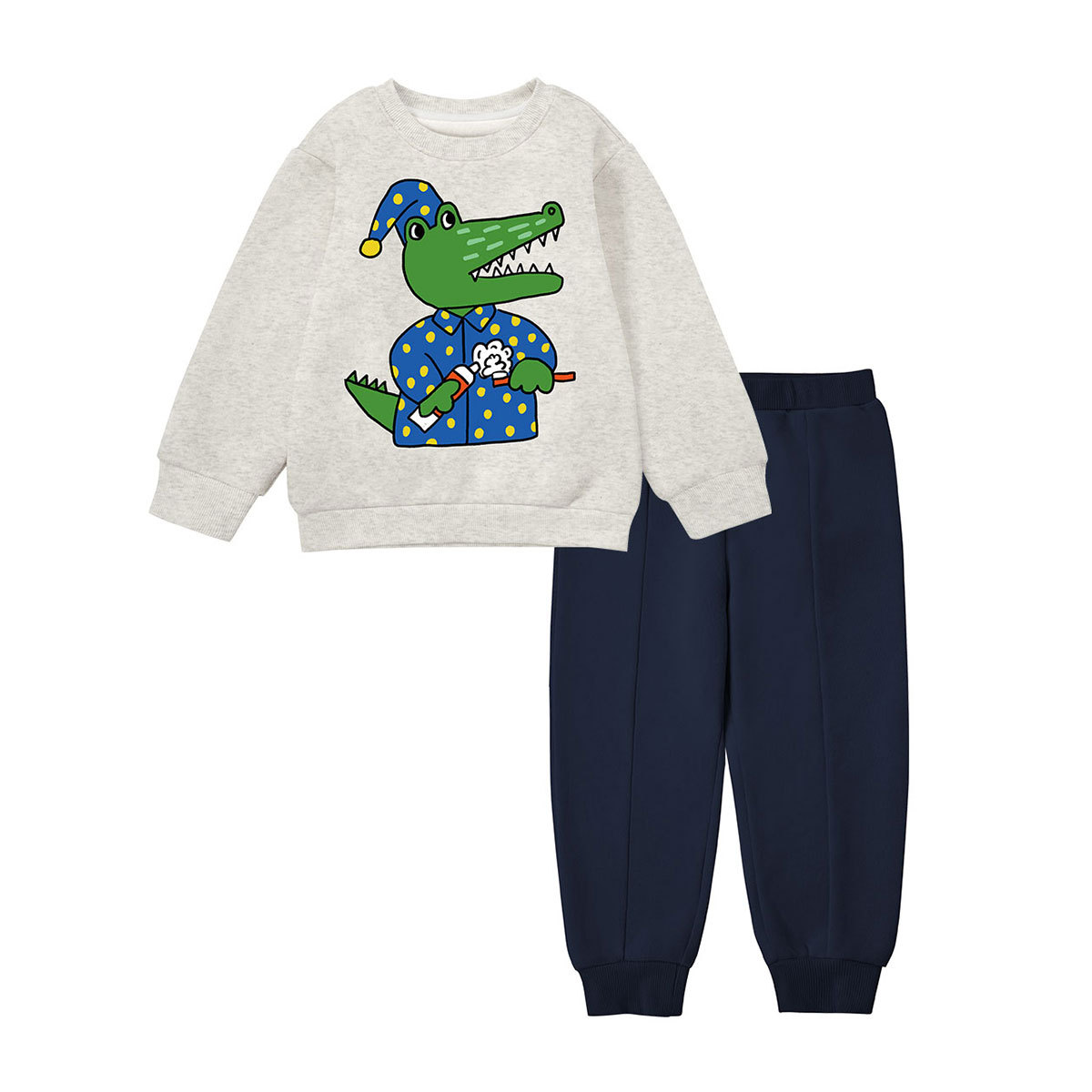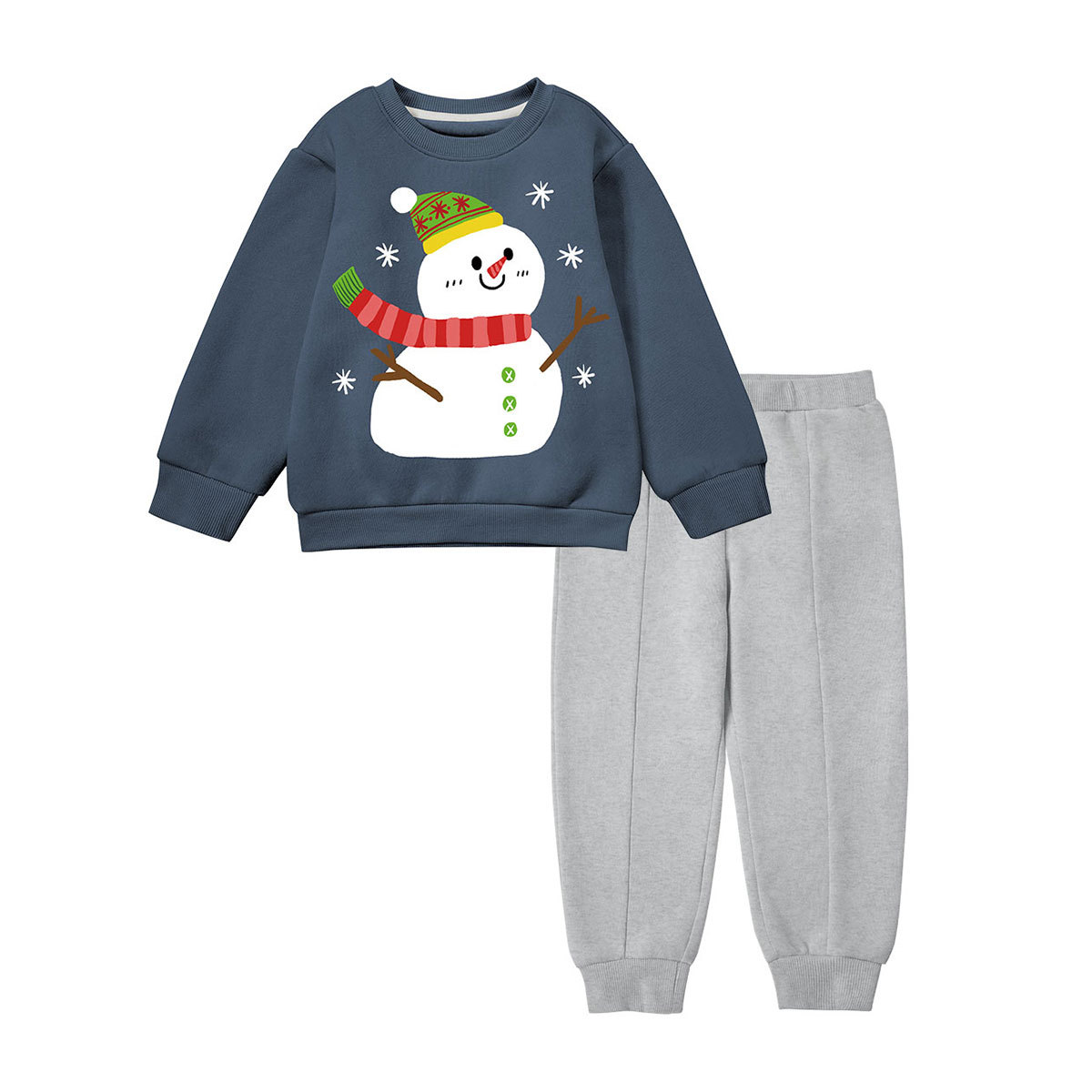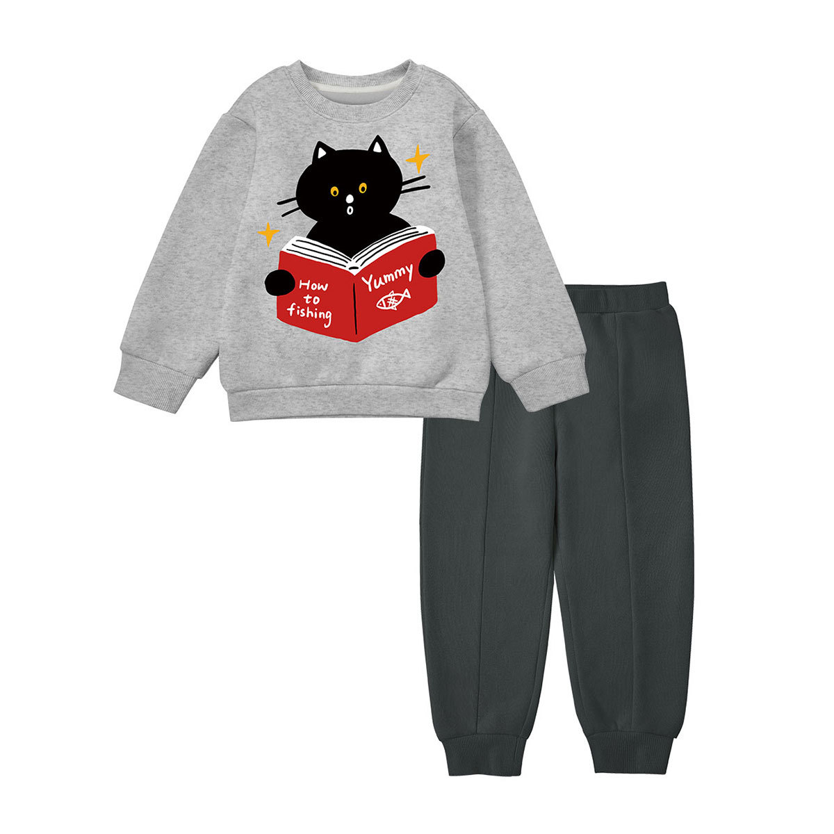 미니 존 어린이 가을과 겨울 기모 스웨트 셔츠 세트 만화 두꺼운 둥근 목 톱 소년 및 어린이 다리 스포츠 바지