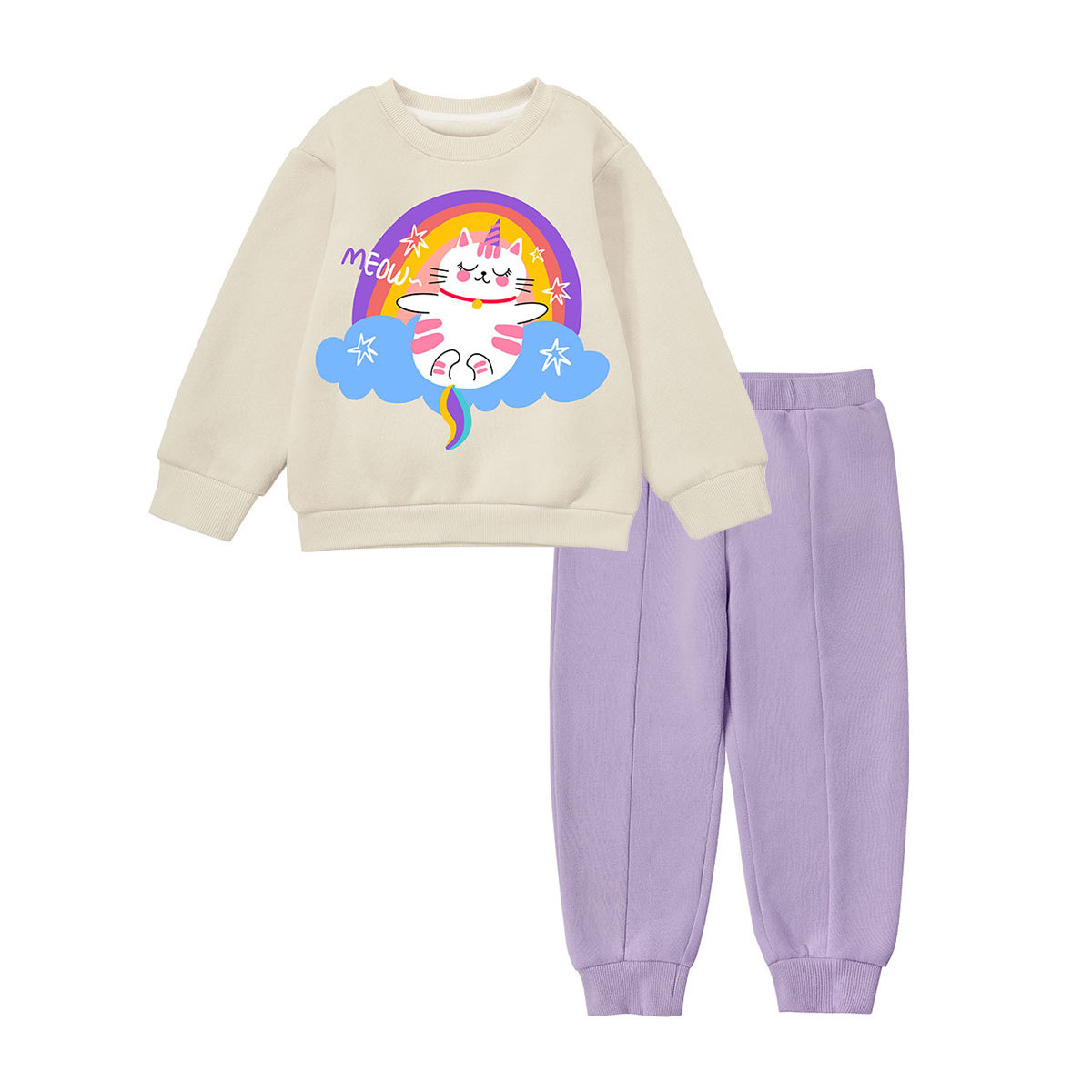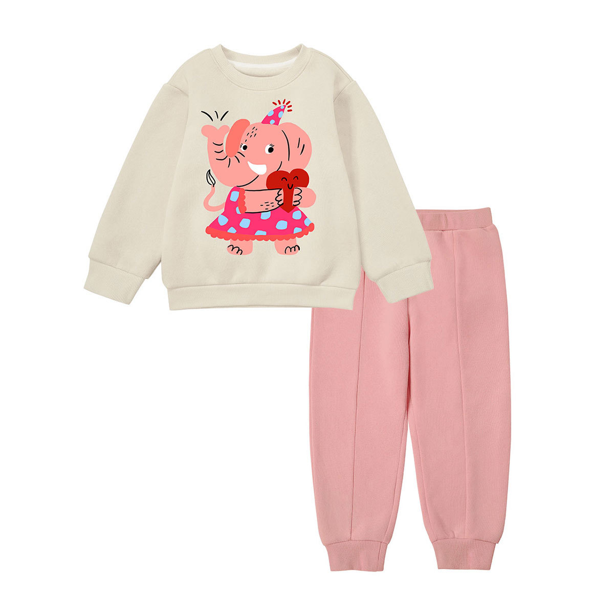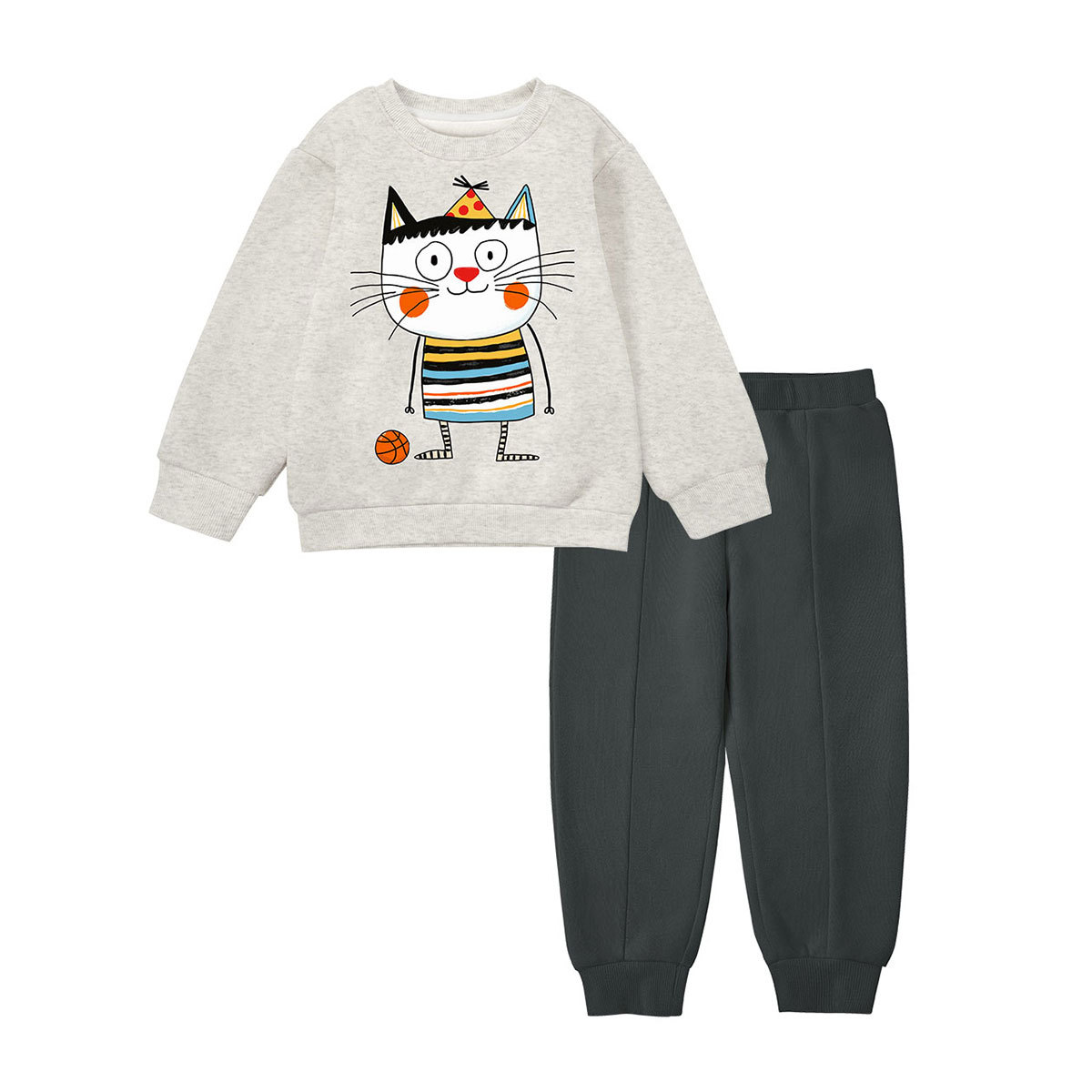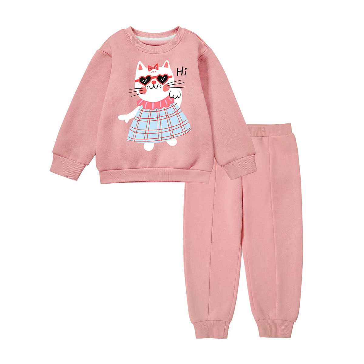 미니 존 어린이 가을과 겨울 기모 스웨트 셔츠 세트 만화 두꺼운 둥근 목 톱 소년 및 어린이 다리 스포츠 바지