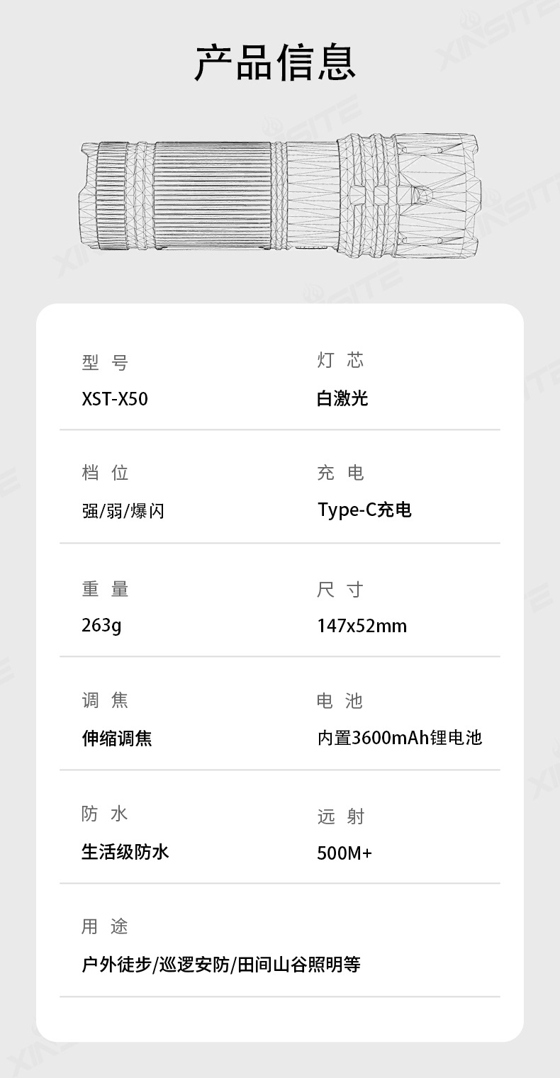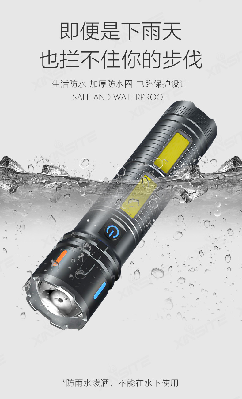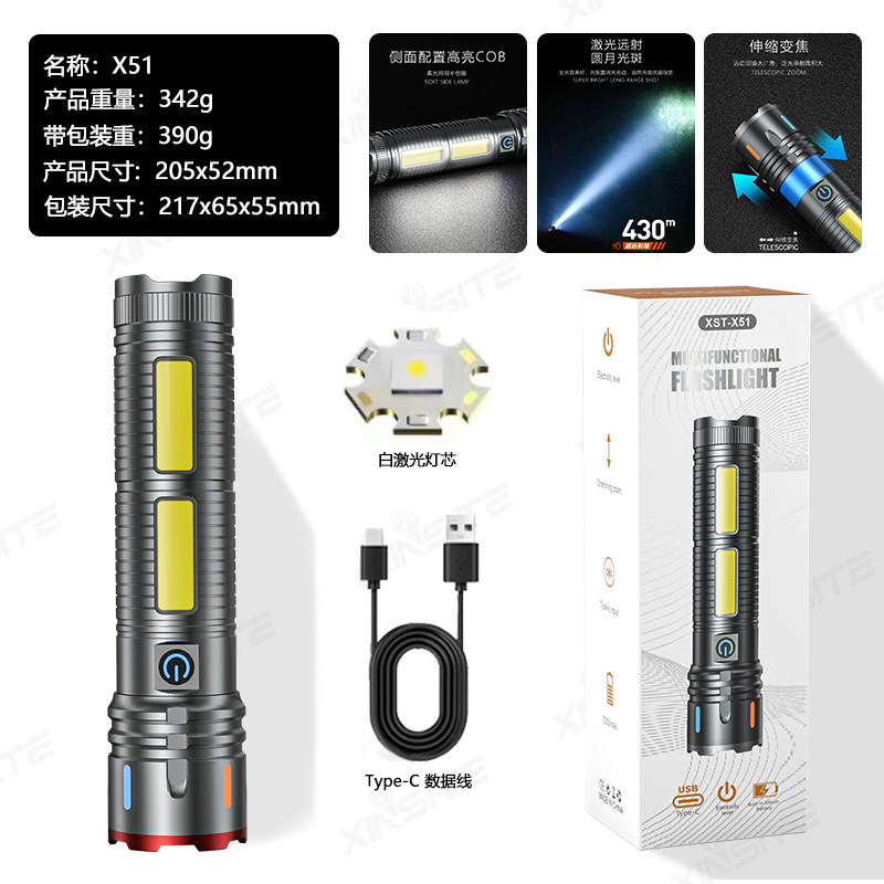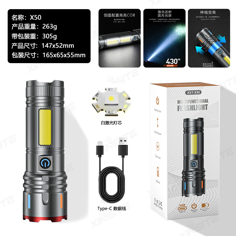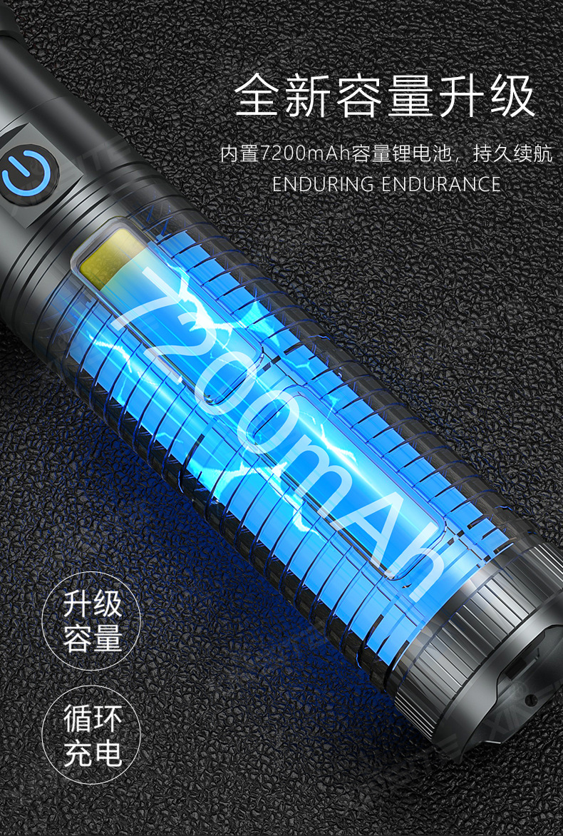 알루미늄 합금 강력한 빛 손전등 고출력 장거리 집광 내장 리튬 배터리 텔레스코픽 줌 손전등