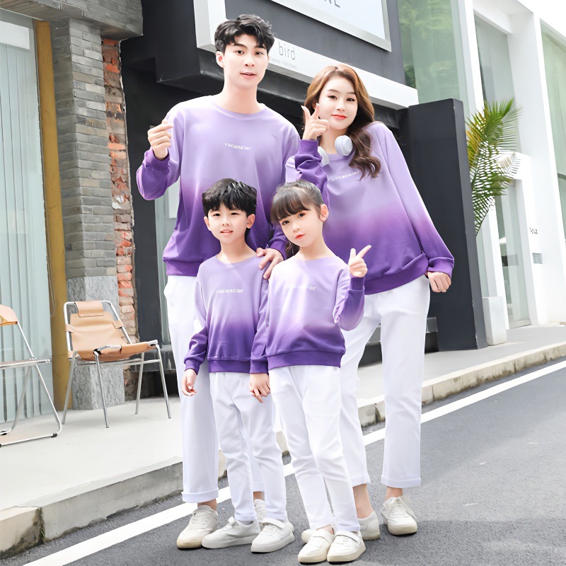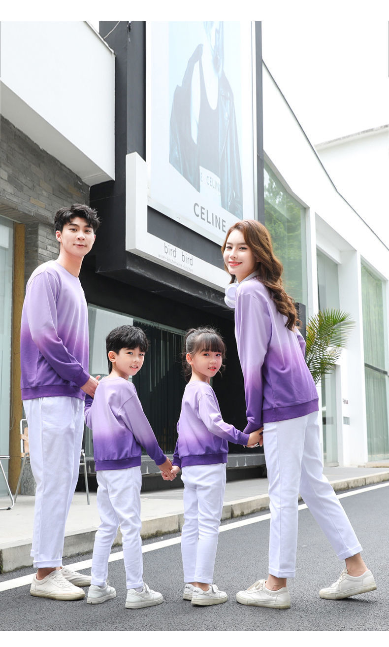 튀긴 거리 2024 가을 겨울 가족 옷 새 가족 옷 그라디언트 인쇄 면 스웨터 세 한국 유행스토어 가기