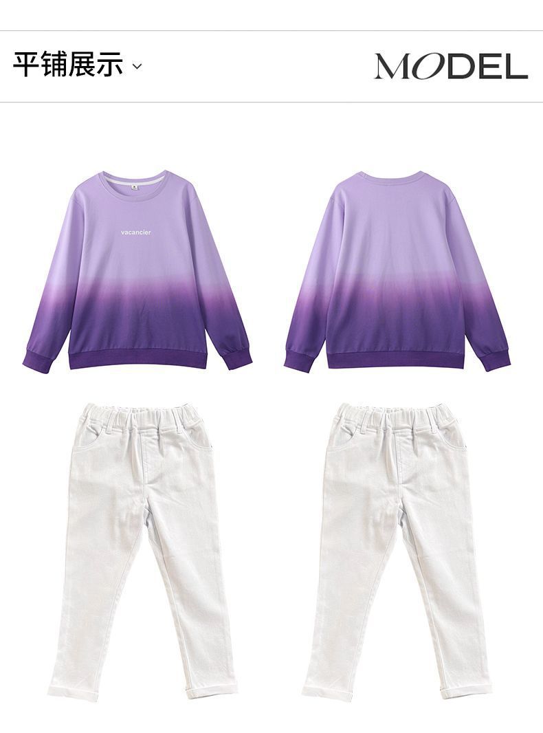 튀긴 거리 2024 가을 겨울 가족 옷 새 가족 옷 그라디언트 인쇄 면 스웨터 세 한국 유행