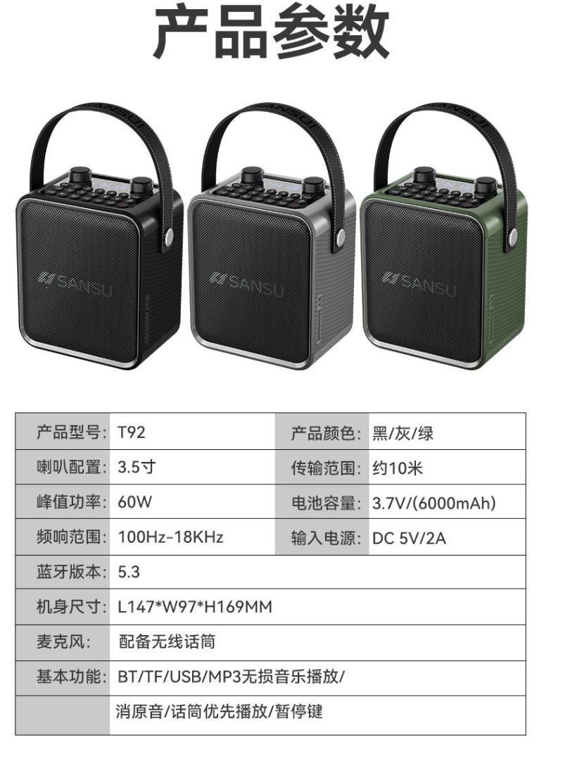 새로운 T92 야외용 휴대용 모바일 노래방 블루투스 스피커, 대용량 사운드, 스퀘어 댄스용 서브우퍼스토어 가기