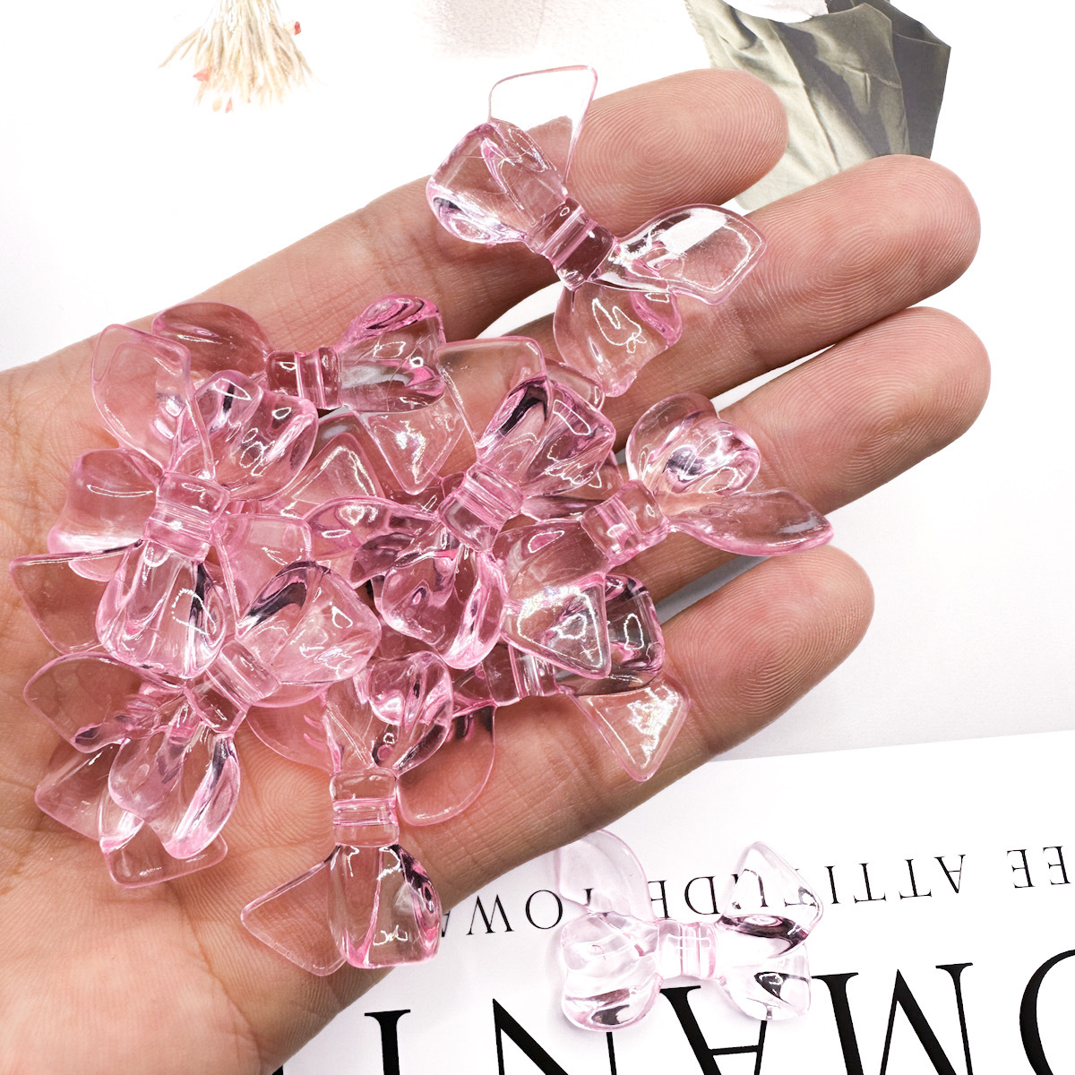 아크릴 컬러 투명 리본 매듭 34x24mm 투명 활 DIY 구슬 키 체인 액세서리스토어 가기