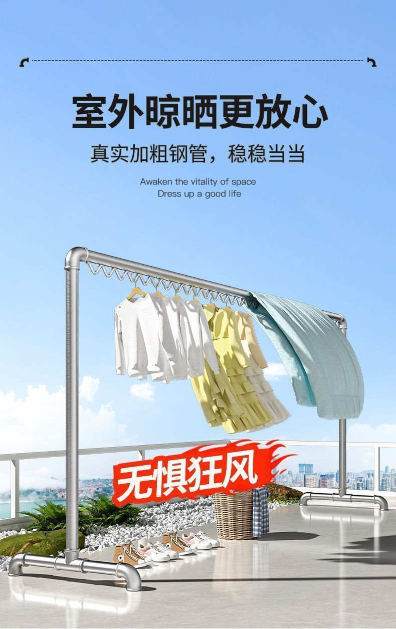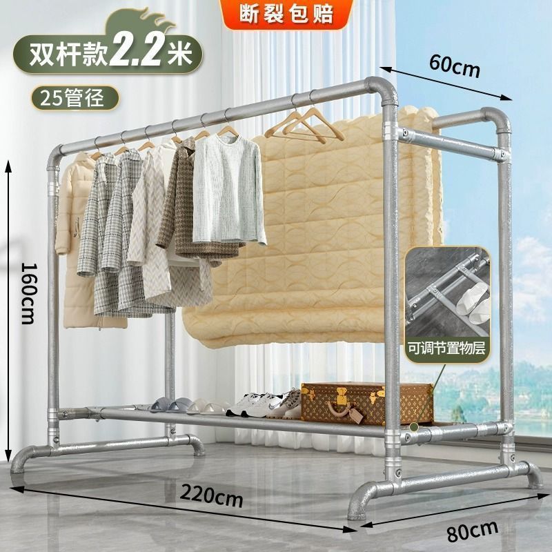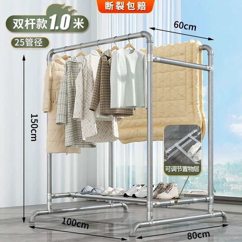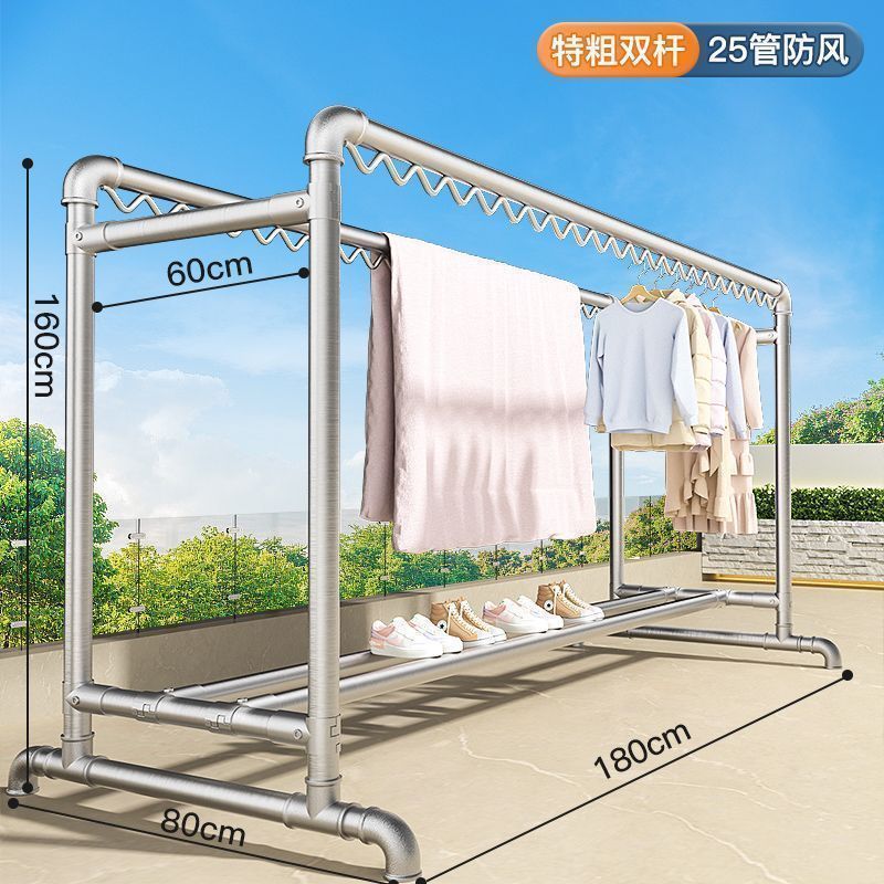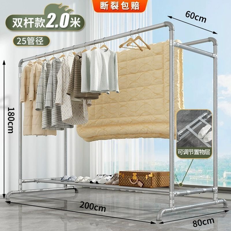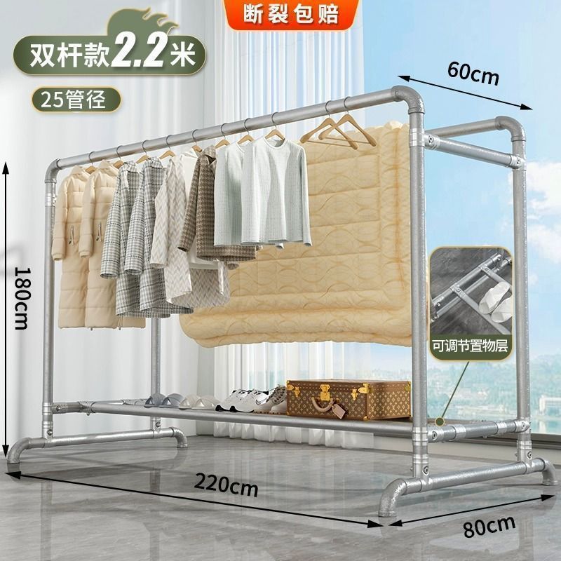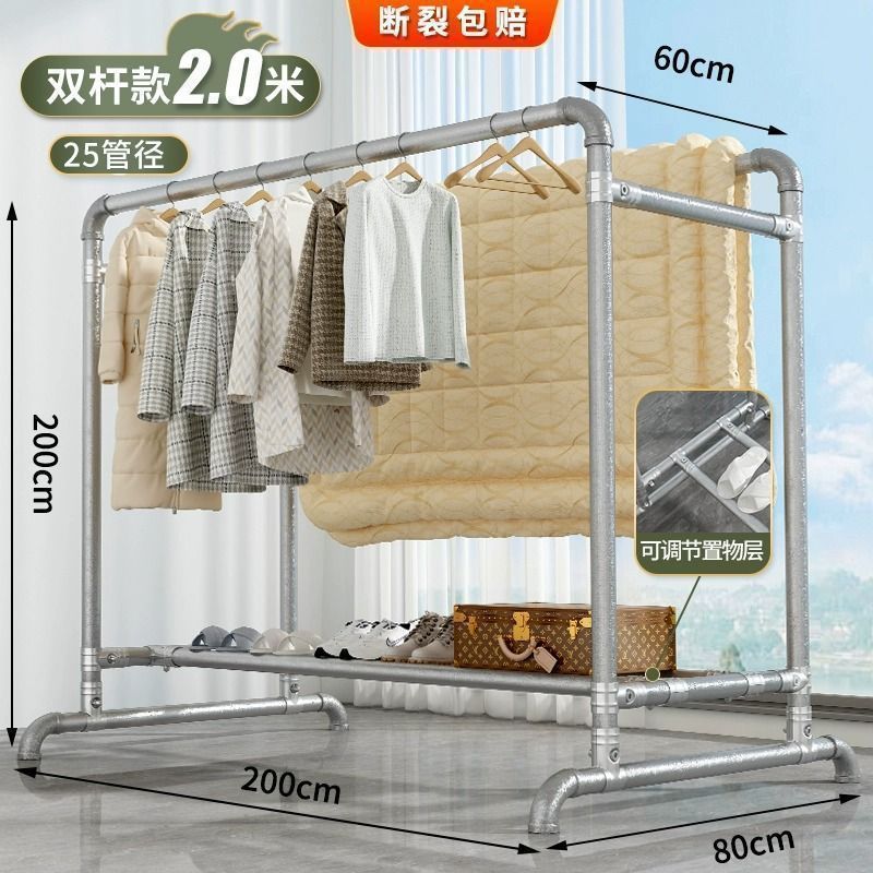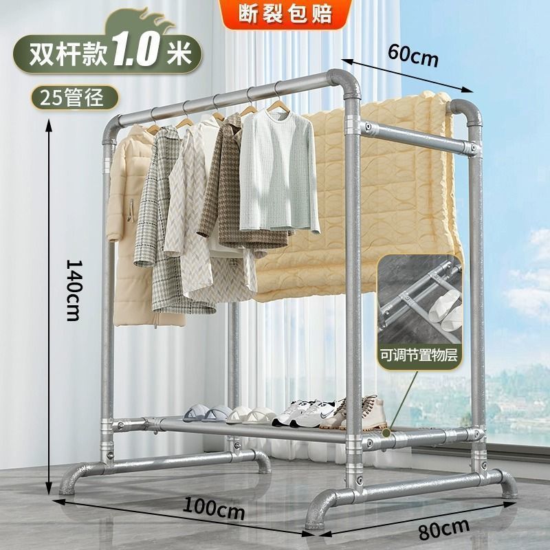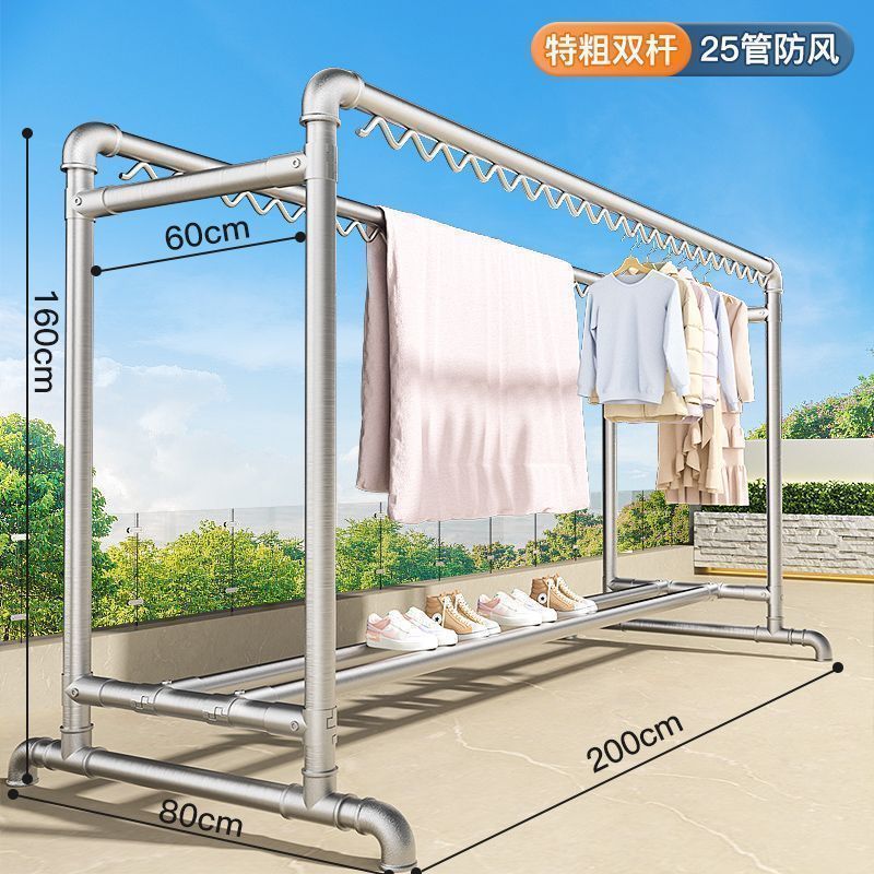 두꺼운 아연 도금 강관 건조 랙 바닥 가정용 발코니 옷걸이 야외 침실 간단한 물 파이프 건조 랙
