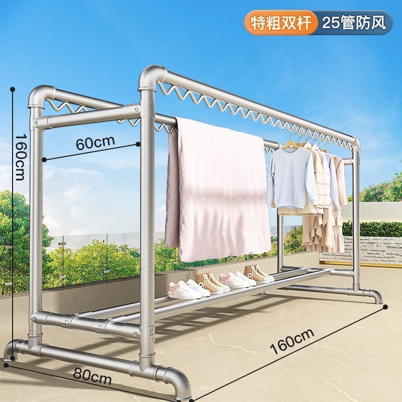 두꺼운 아연 도금 강관 건조 랙 바닥 가정용 발코니 옷걸이 야외 침실 간단한 물 파이프 건조 랙스토어 가기