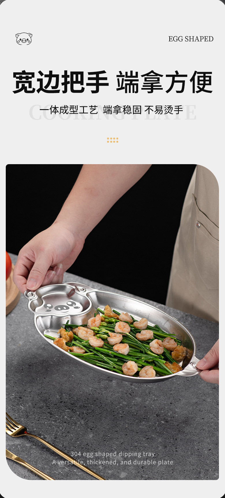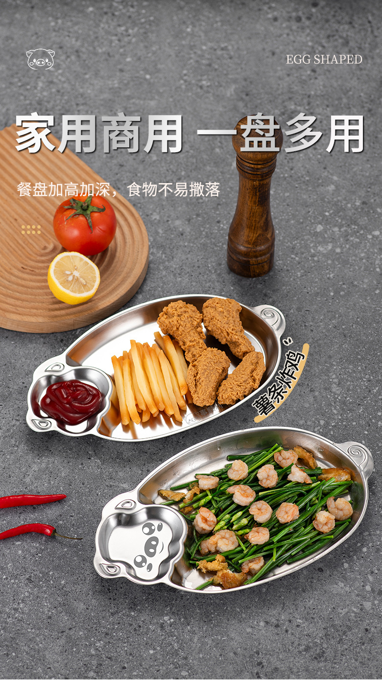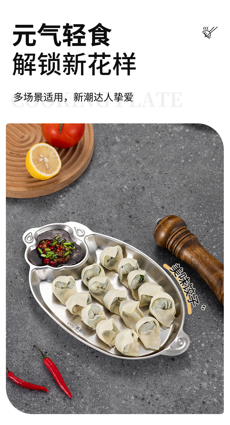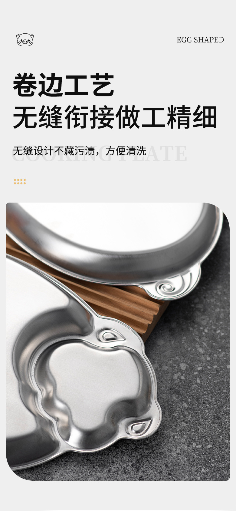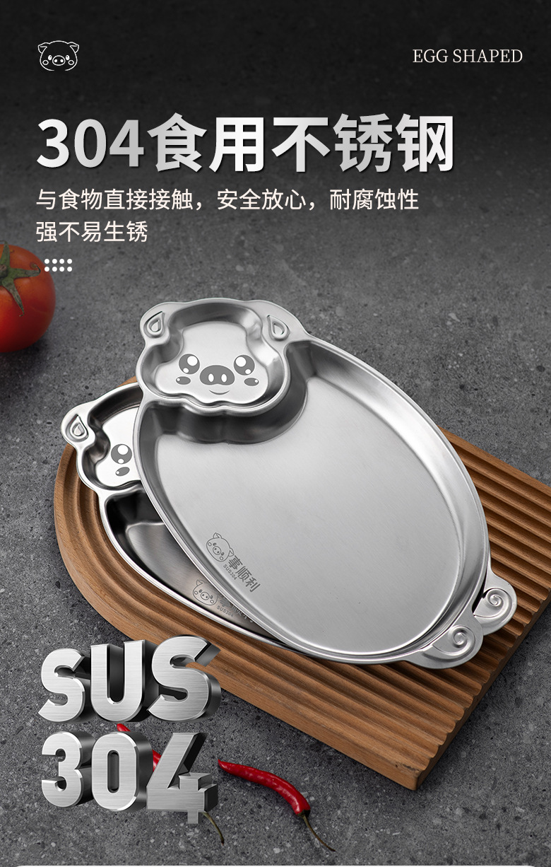 두꺼운 304 스테인레스 스틸 플레이트 만두 플레이트 식초 플레이트 디너 플레이트 가정용 접시 평면 바닥 깊은 접시 작은 만화 모양