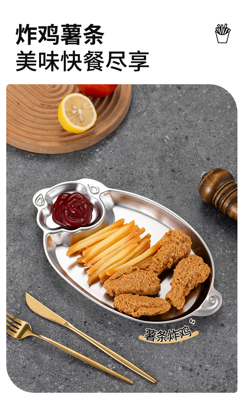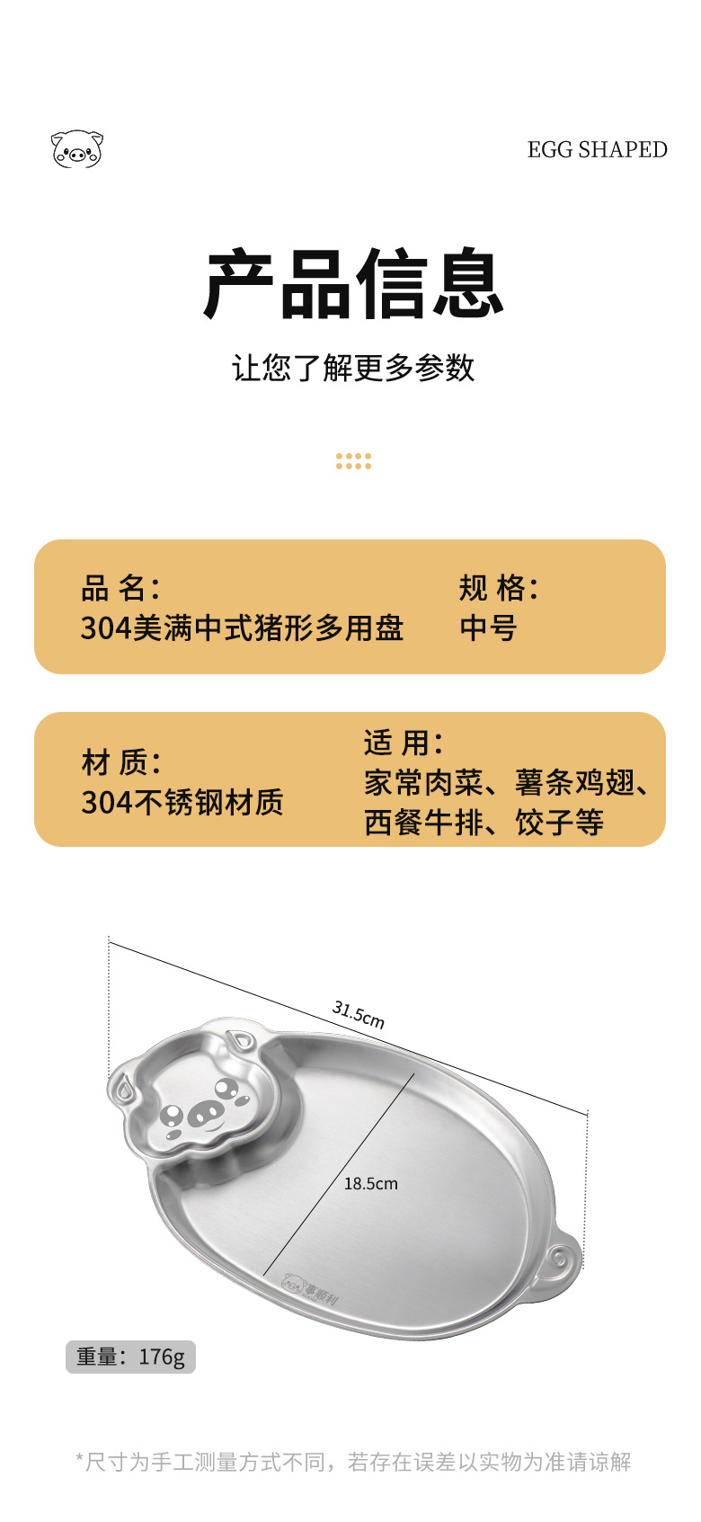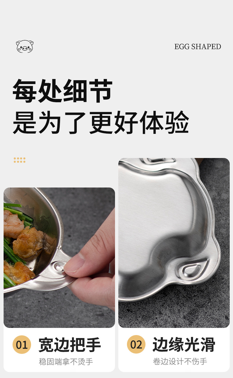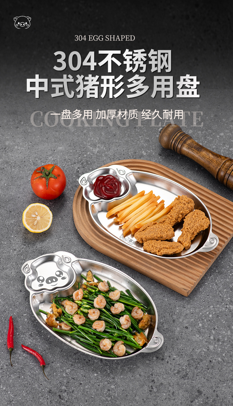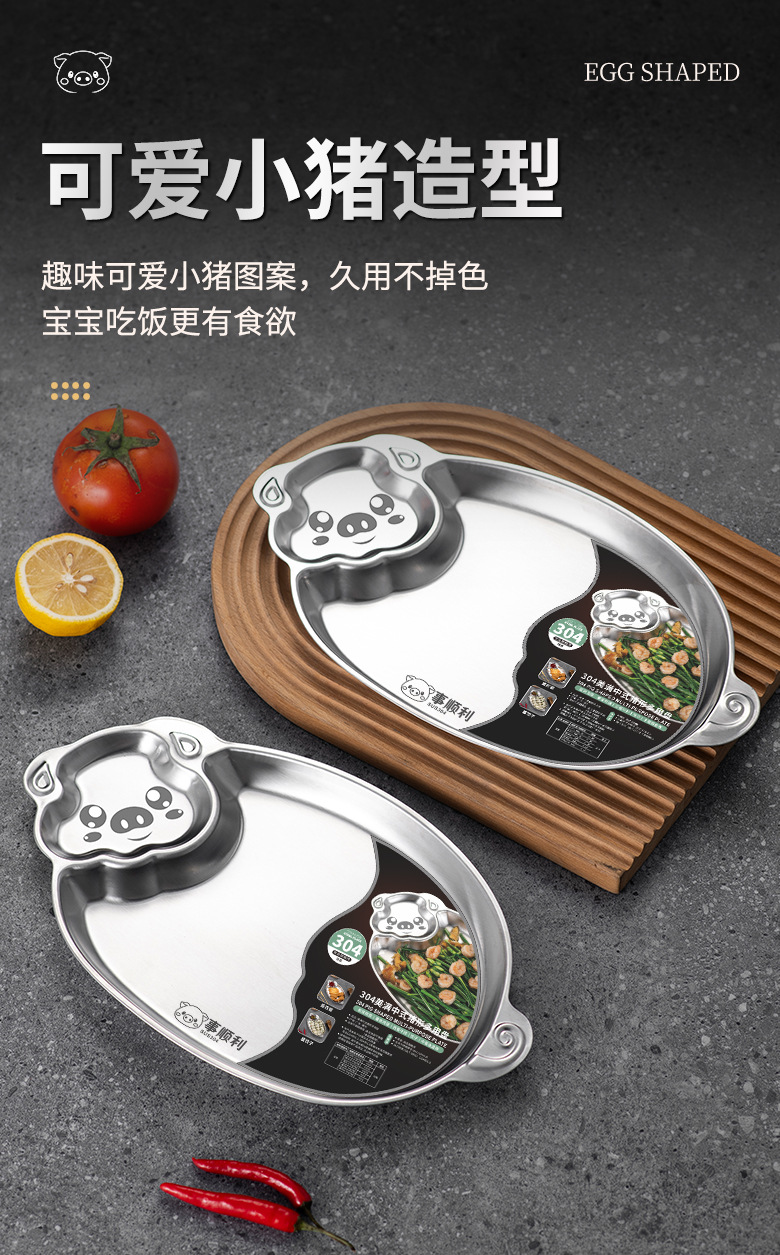 두꺼운 304 스테인레스 스틸 플레이트 만두 플레이트 식초 플레이트 디너 플레이트 가정용 접시 평면 바닥 깊은 접시 작은 만화 모양