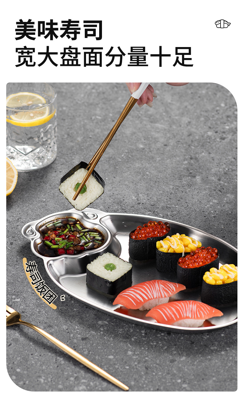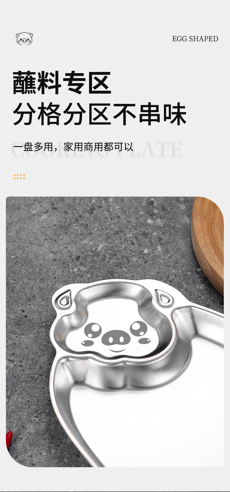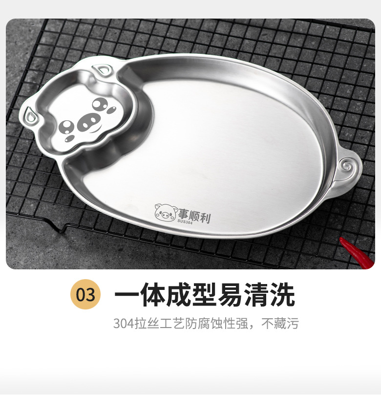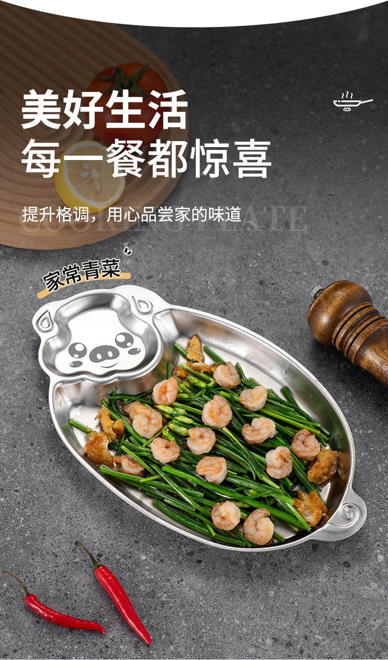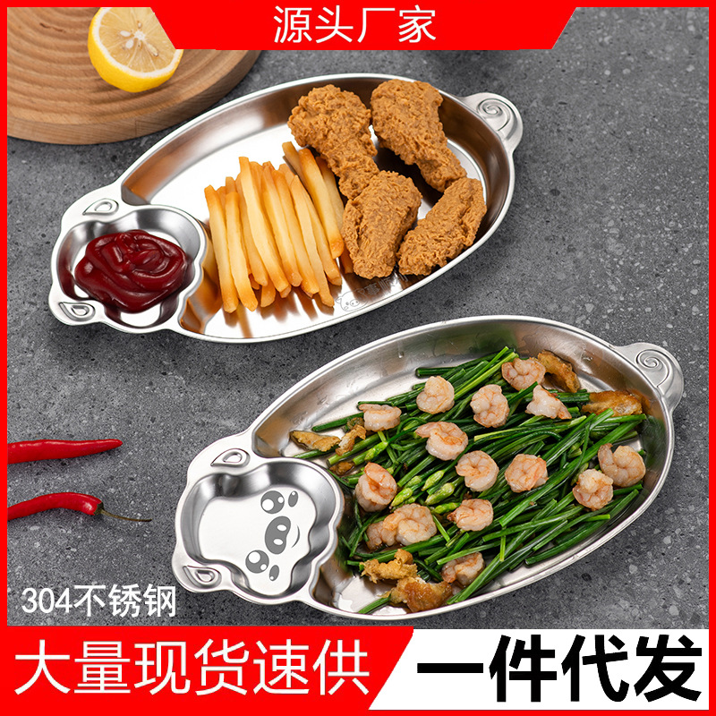 두꺼운 304 스테인레스 스틸 플레이트 만두 플레이트 식초 플레이트 디너 플레이트 가정용 접시 평면 바닥 깊은 접시 작은 만화 모양스토어 가기