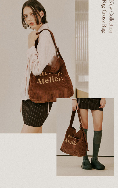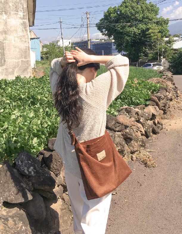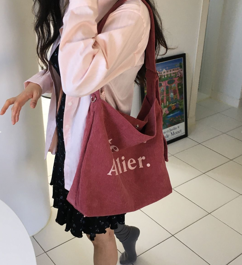 재고 2024 겨울 새 한국 동쪽 게이트 B * 야텔리에 코듀로이 캔버스 숄더백