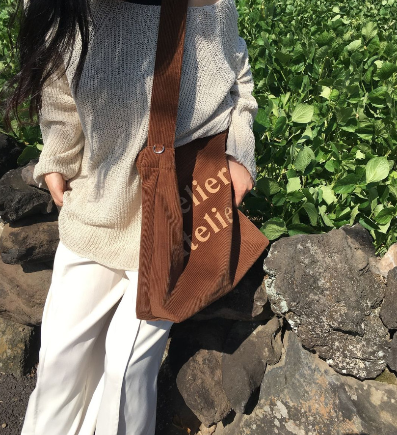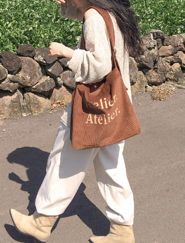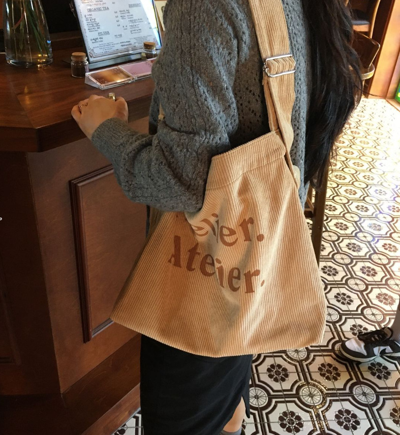 재고 2024 겨울 새 한국 동쪽 게이트 B * 야텔리에 코듀로이 캔버스 숄더백스토어 가기