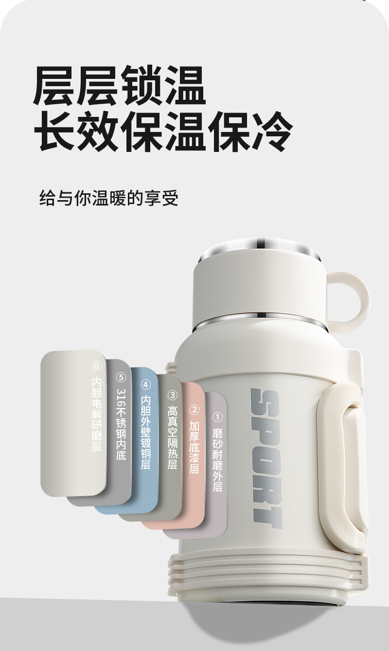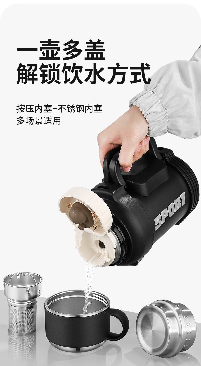 Qihu 보온병 휴대용 야외 보온병 컵 대용량 차 물 분리 보온병 물 컵 가정용 주전자 차