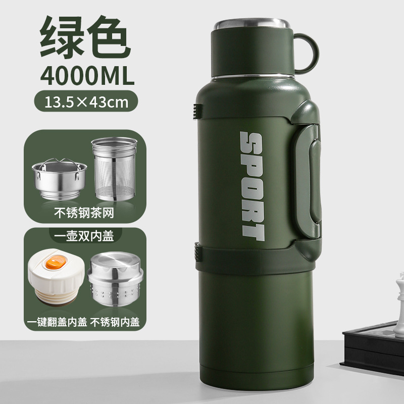 • 4000ml 녹색(스틸 내부 뚜껑 + 팝업 뚜껑) - 컵 브러시 포함