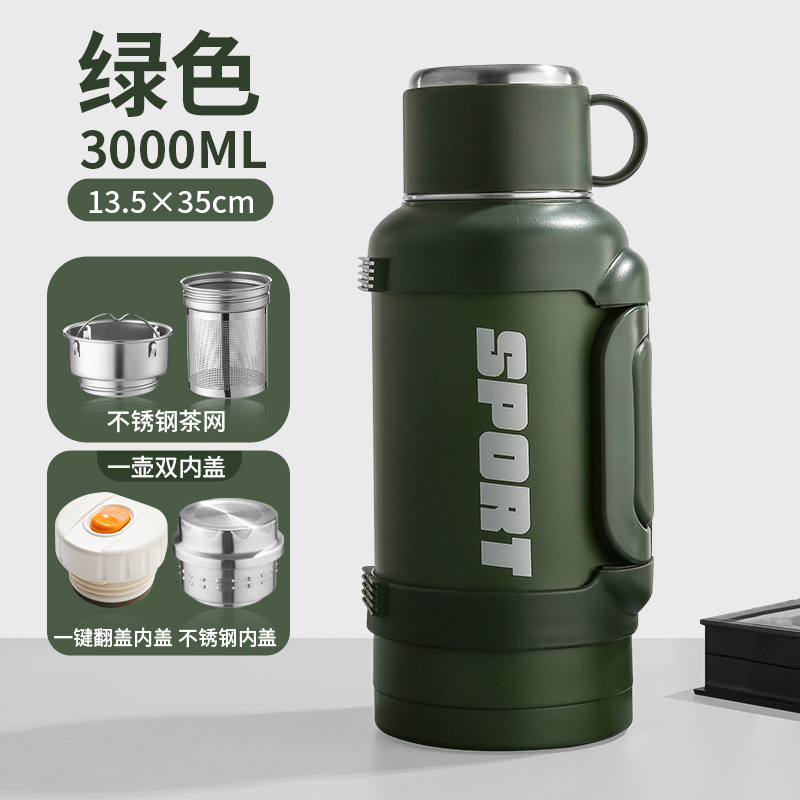 • 3000ml 녹색(스틸 내부 뚜껑 + 팝업 뚜껑) - 컵 브러시 포함