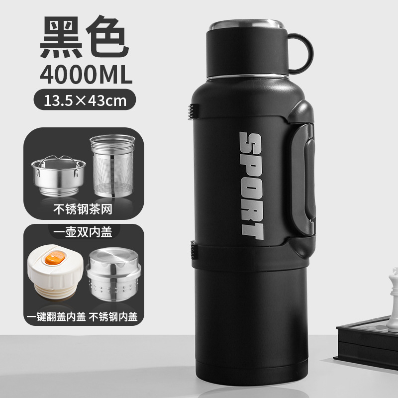 • 4000ml 검정색(스틸 내부 뚜껑 + 팝업 뚜껑) - 컵 브러시 포함
