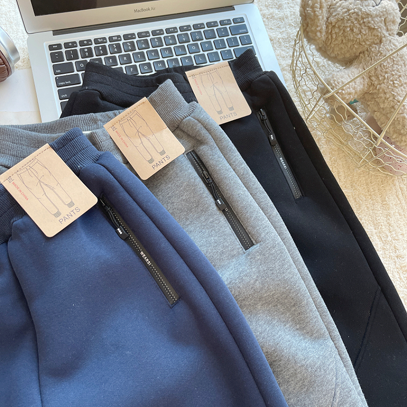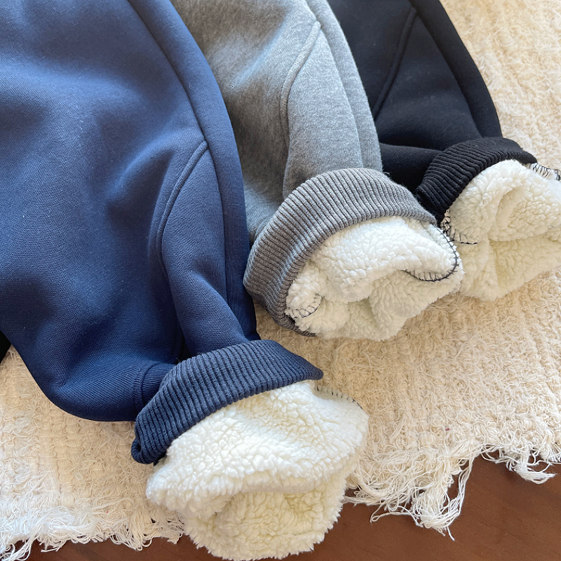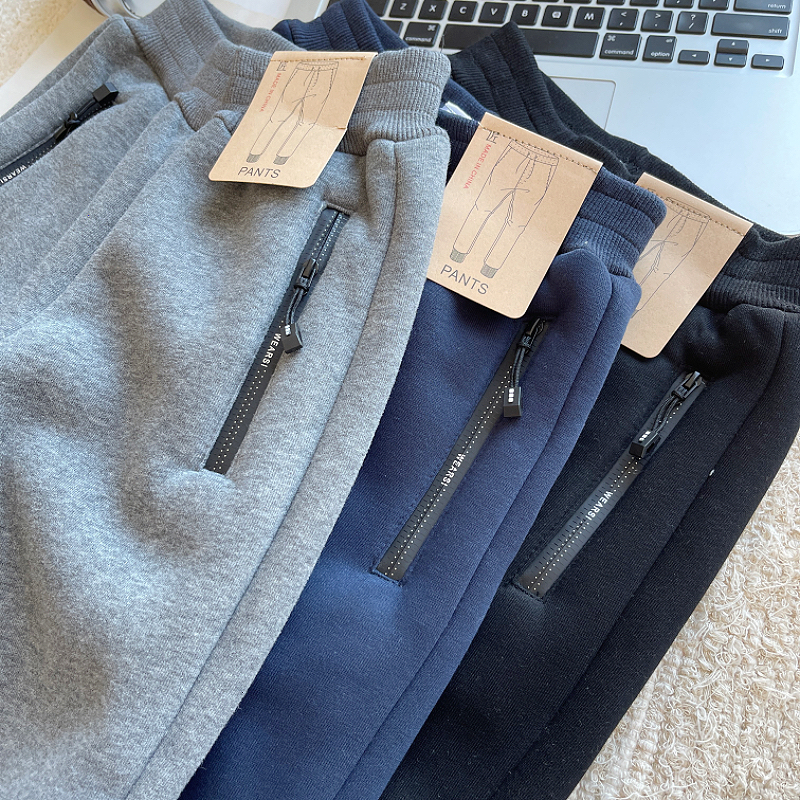 소년 기모 운동복 겨울 새 어린이 지퍼 포켓 양가죽 바지 큰 어린이 캐주얼 스포츠 바지스토어 가기