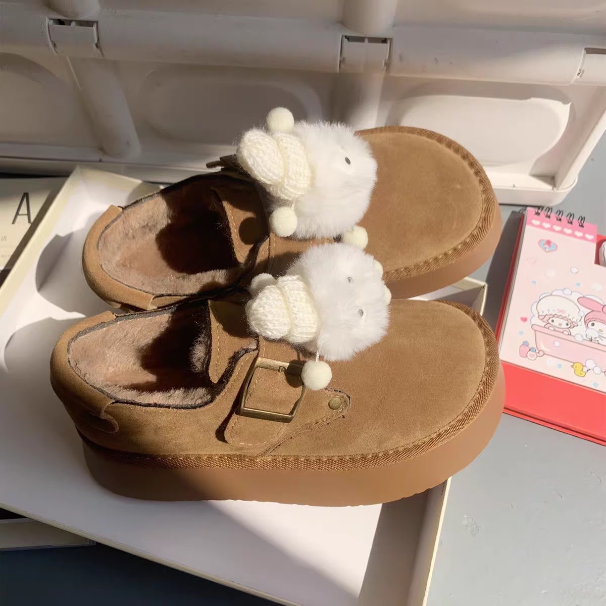 푹신한 공 Birkan 신발 짧은 튜브 스노우 부츠 부드러운 바닥 학생 부츠 추가 2024 겨울 새로운 미끄럼 방지 면화 여성 신발