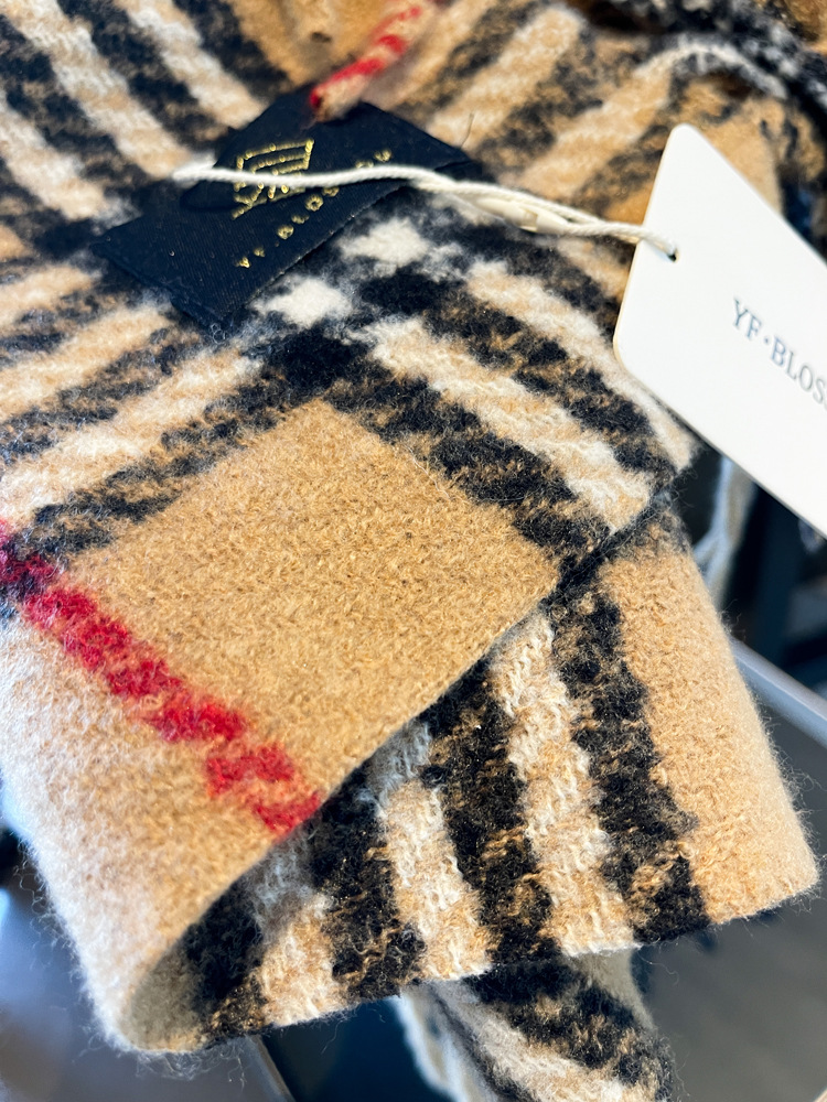 24冬新款英伦B风卡其格子流苏仿羊绒围巾女高级感时尚披肩两用厚