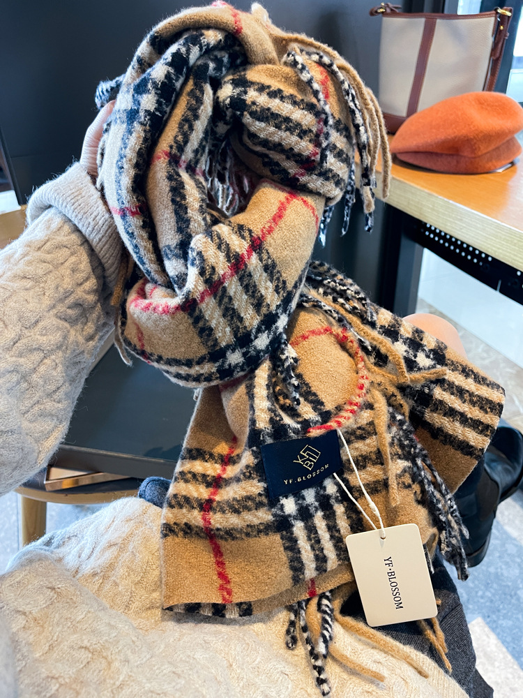 영국 스타일 B 스타일 Khaky Plaid Tassel 모방 캐시미어 스카프 여성 하이 엔드 패션 목도리 듀얼 사용 두꺼운 조커스토어 가기