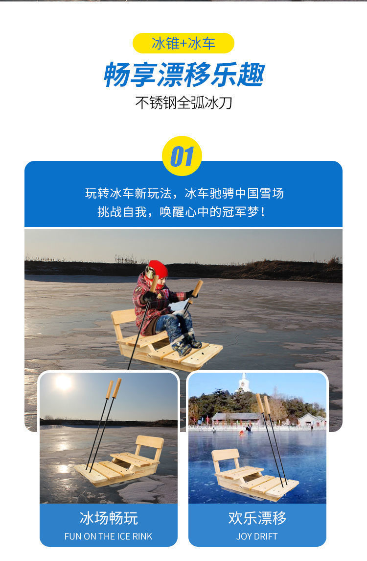 아이스 카 야외 솔리드 우드 아이스 카 스케이트 자동차 아이스 썰매 아이들이 새로운 앉아 구식 아이스 카 스케이트 카로스토어 가기