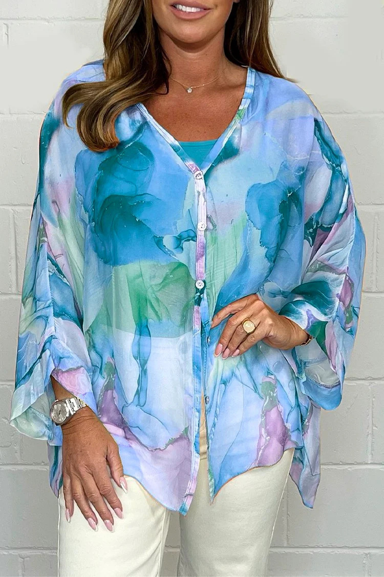 아마존 국경 간 여성 의류 2025 유럽과 미국은 국경을 넘나 드는 새로운 여름 꽃 삽화 인쇄 쉬폰 셔츠스토어 가기