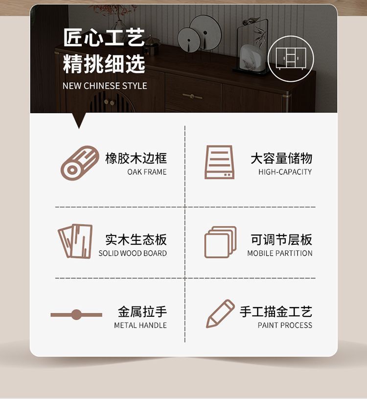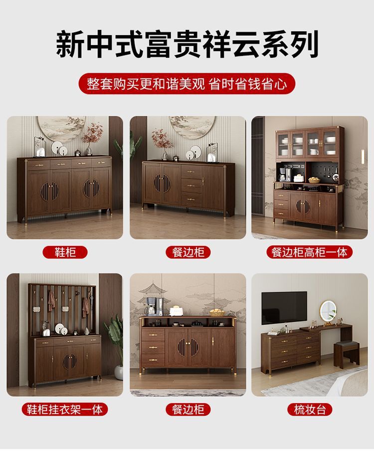 2024 새로운 중국 스타일 솔리드 우드 사이드 보드 와인 캐비닛 통합 간단한 벽면 주방 다기능 거실 보관 캐비닛스토어 가기