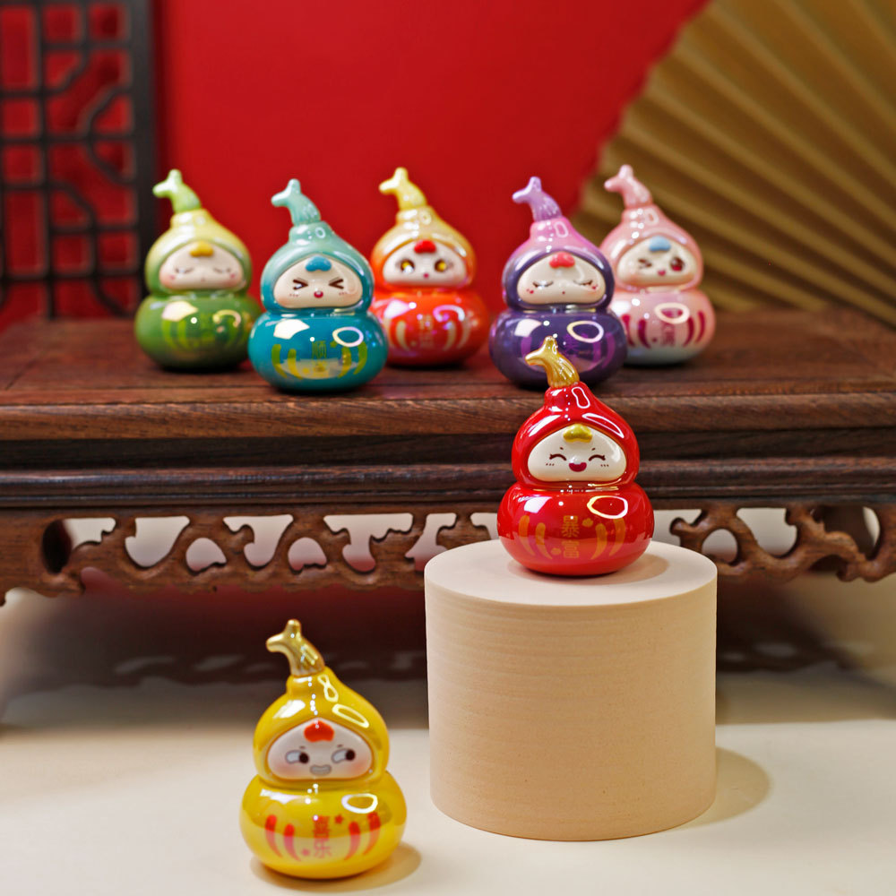 새해 Xiwa Little Fulu Meng Grain 블라인드 박스 수제 귀여운 조롱박 블라인드 가방 인형 트렌디 플레이 데스크탑 장식품 작은 선물스토어 가기