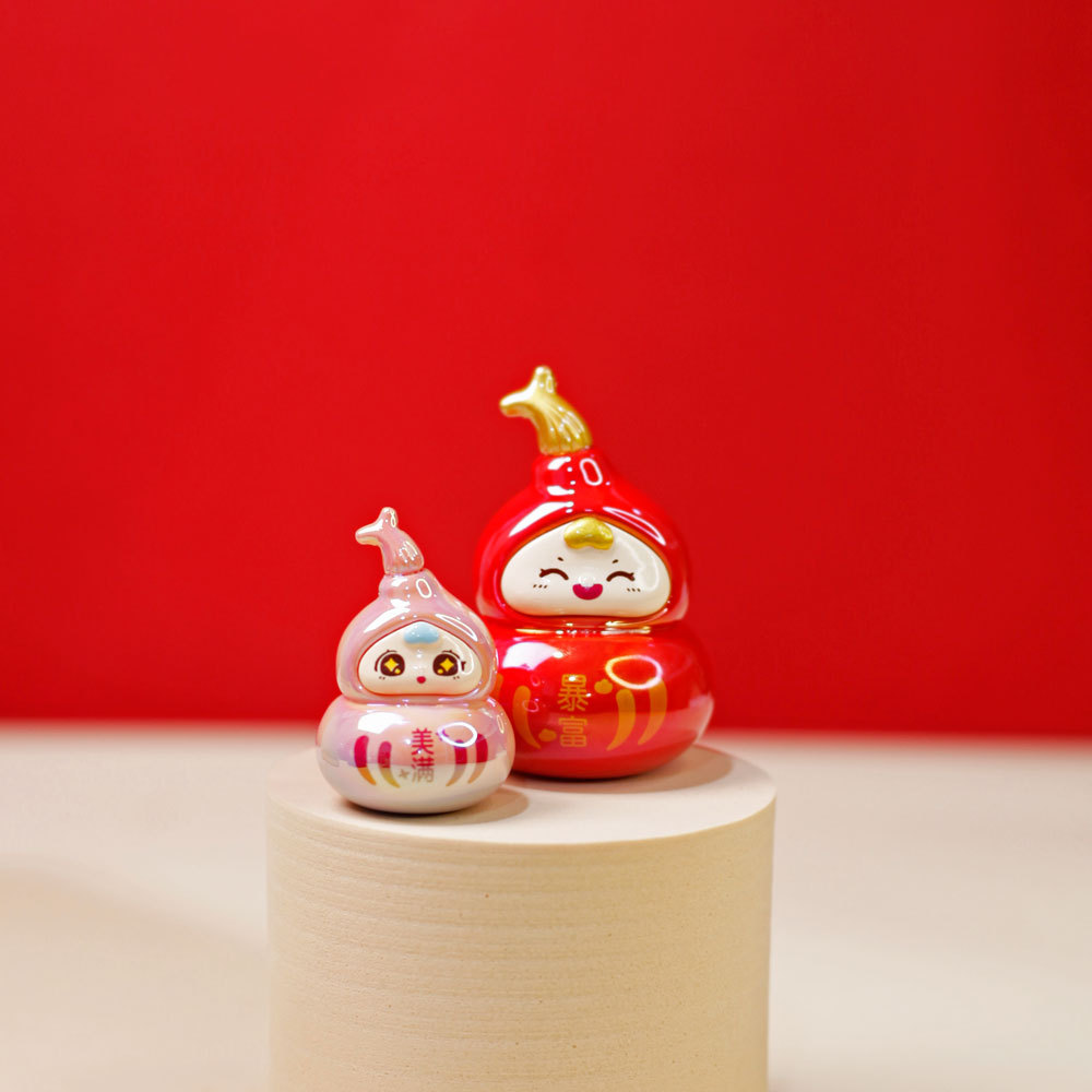 새해 Xiwa Little Fulu Meng Grain 블라인드 박스 수제 귀여운 조롱박 블라인드 가방 인형 트렌디 플레이 데스크탑 장식품 작은 선물