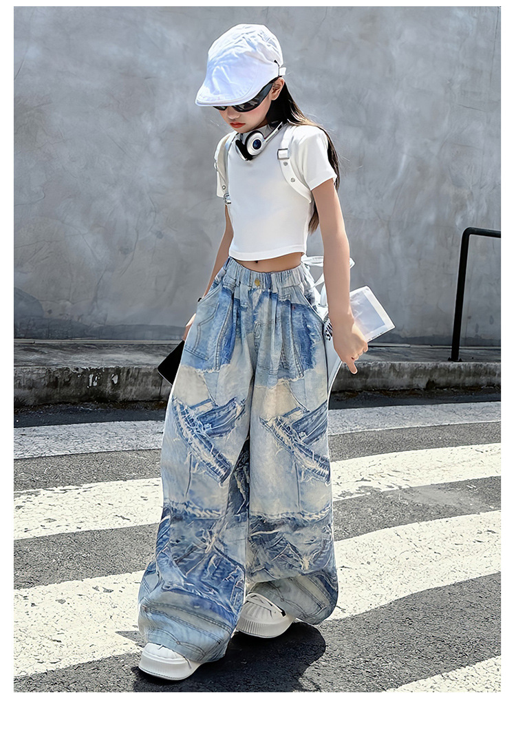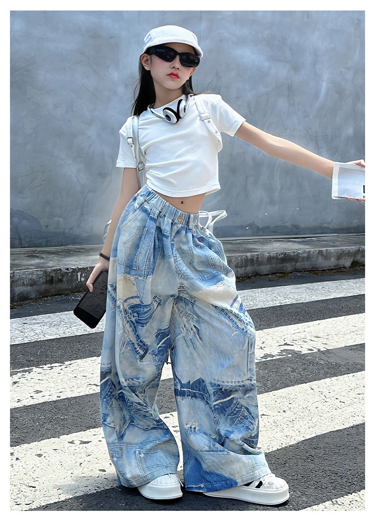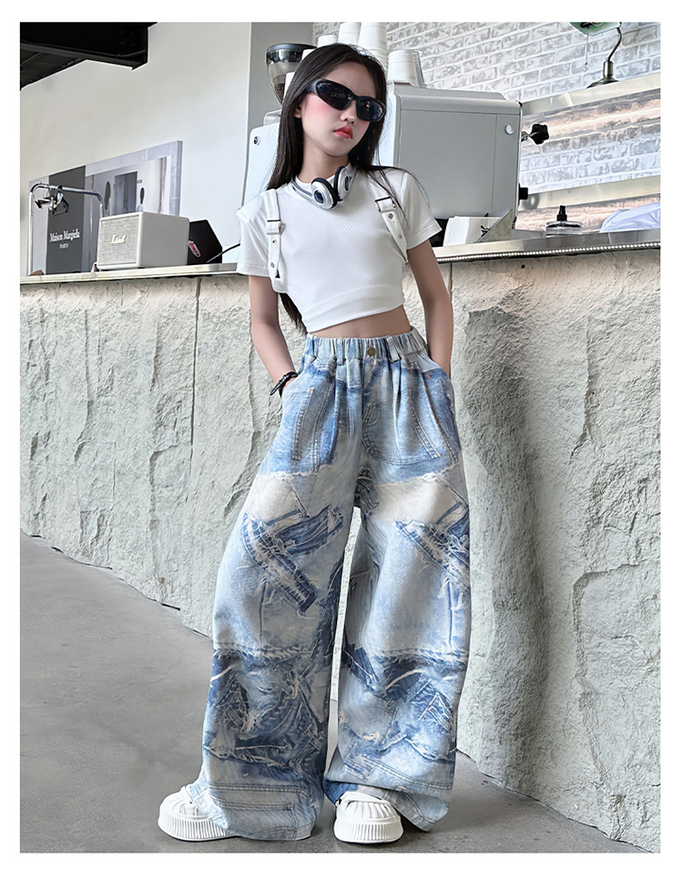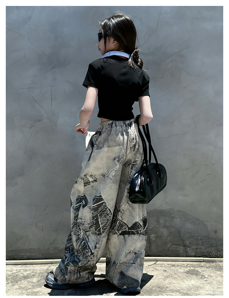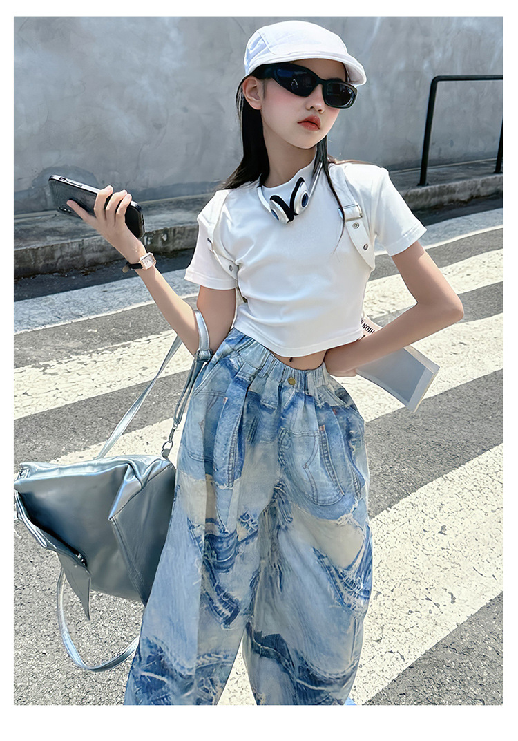 2025 년 봄과 여름 세트 아동복 소녀 새 어린이 그물 붉은 튀김 거리 타이 염색 투피스 세트 큰 어린이 서양식 조수