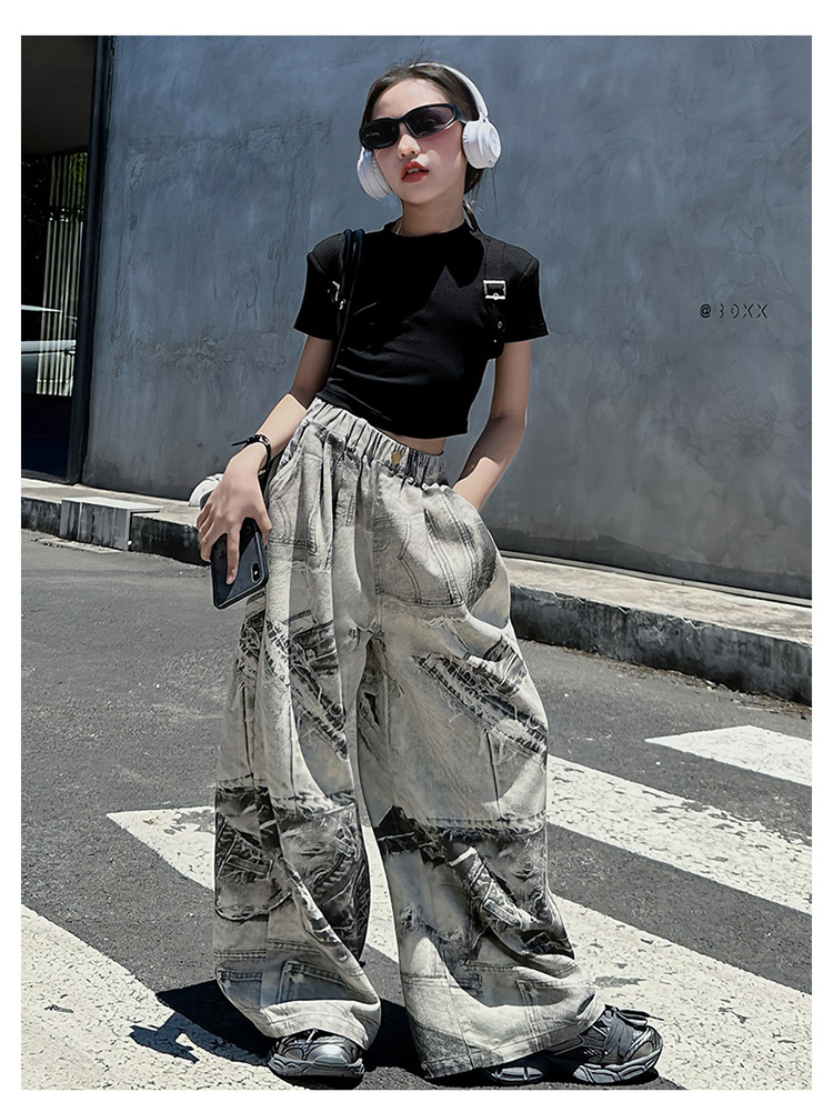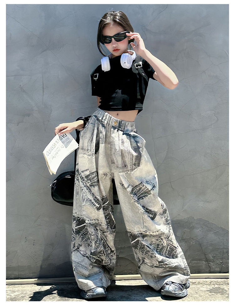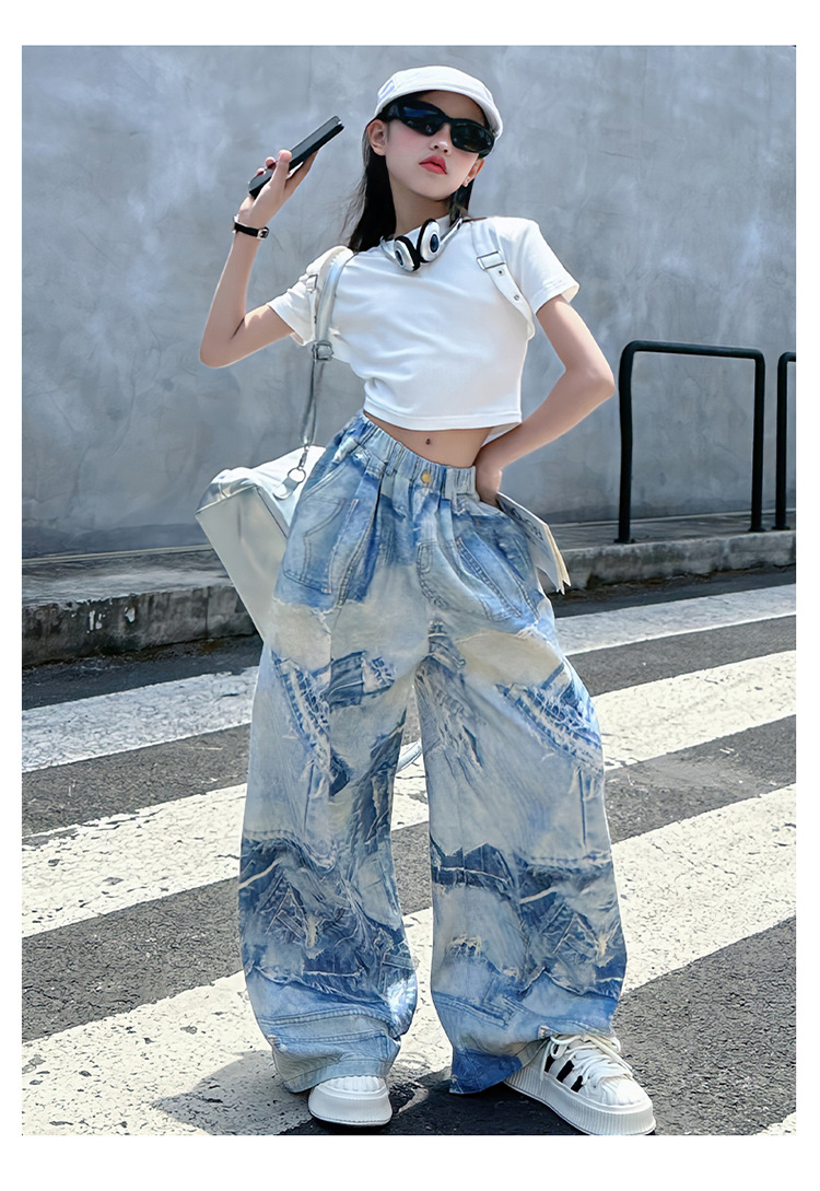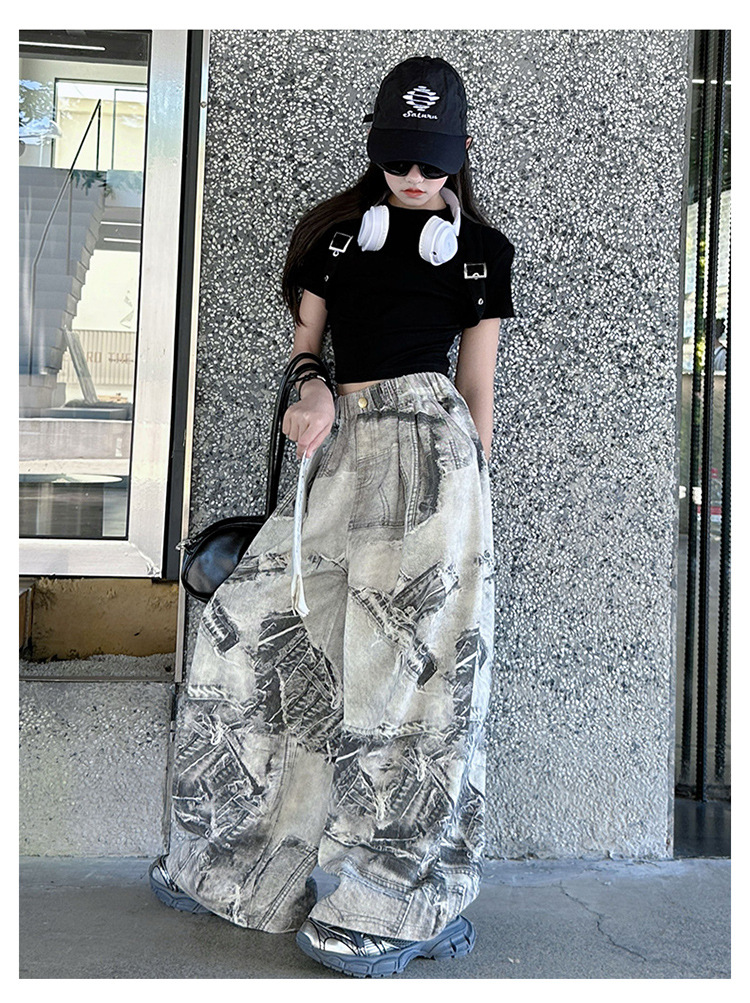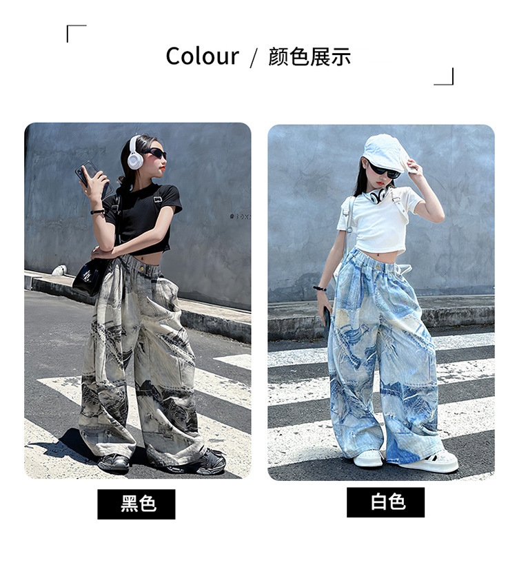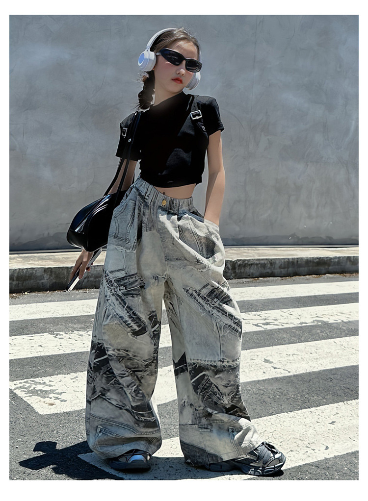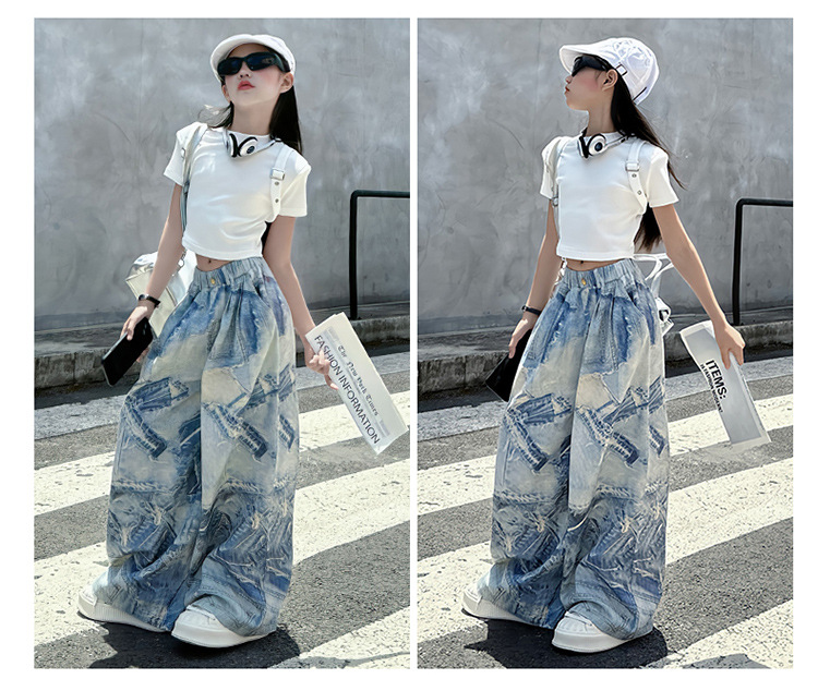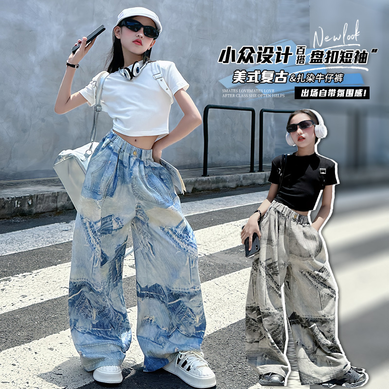 2025 년 봄과 여름 세트 아동복 소녀 새 어린이 그물 붉은 튀김 거리 타이 염색 투피스 세트 큰 어린이 서양식 조수스토어 가기