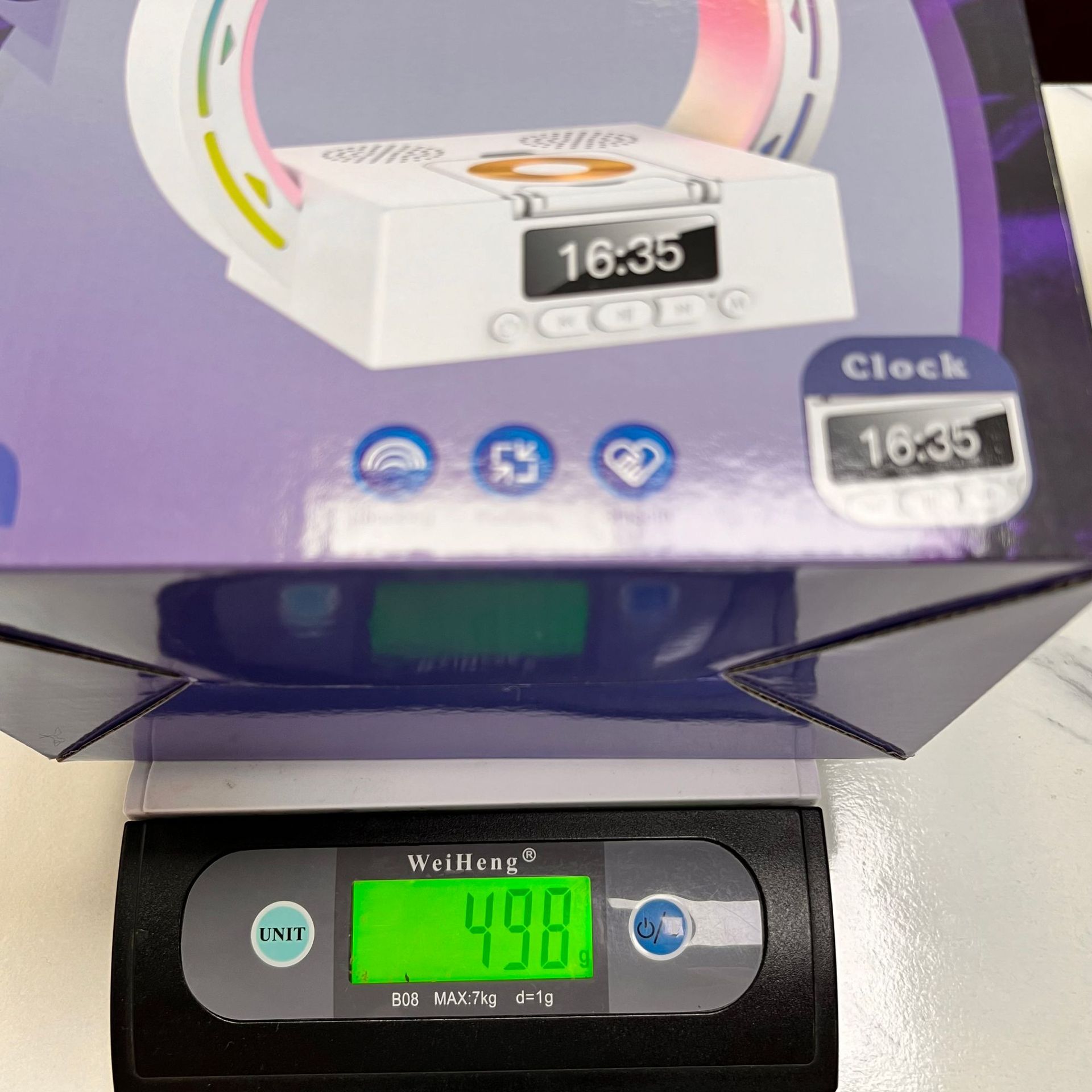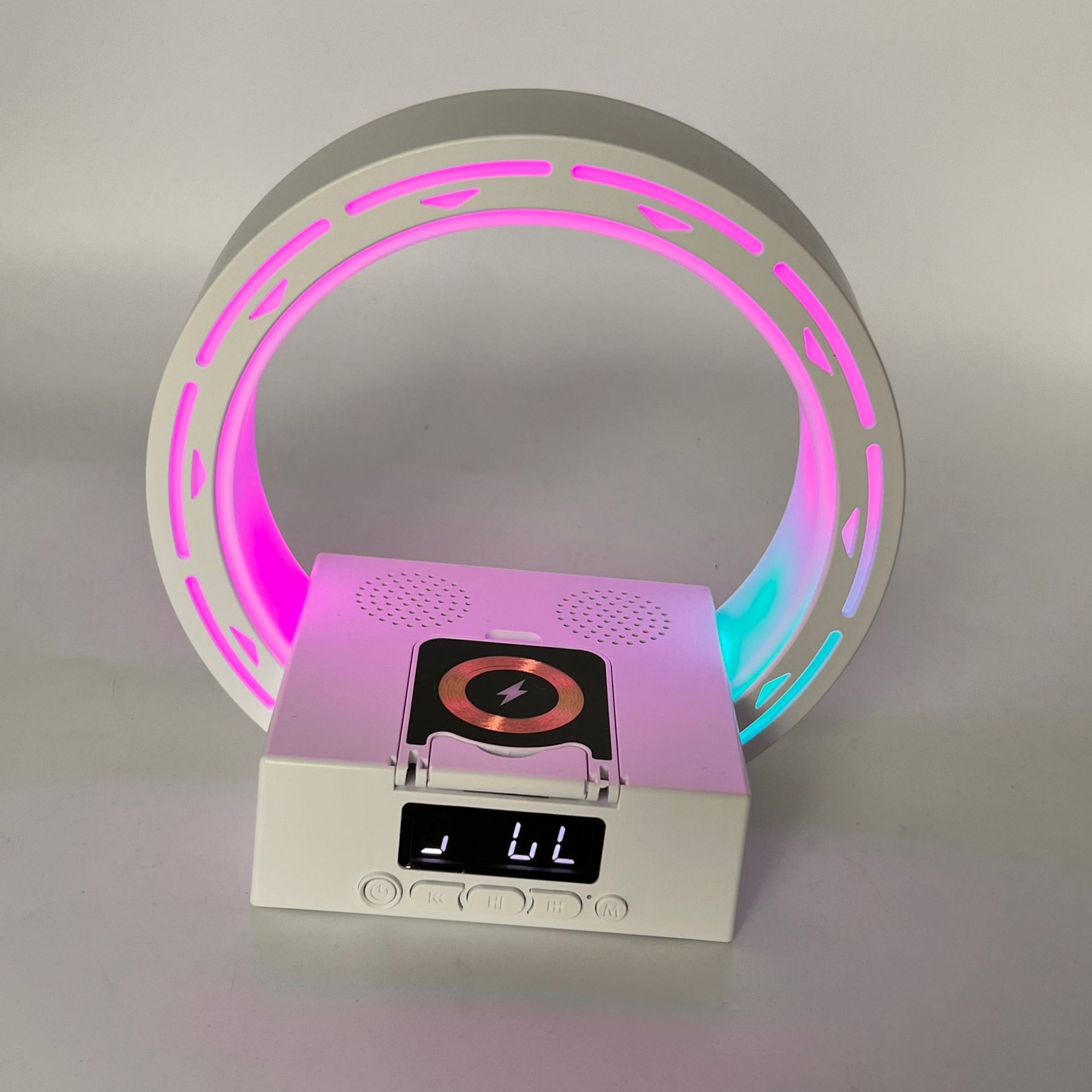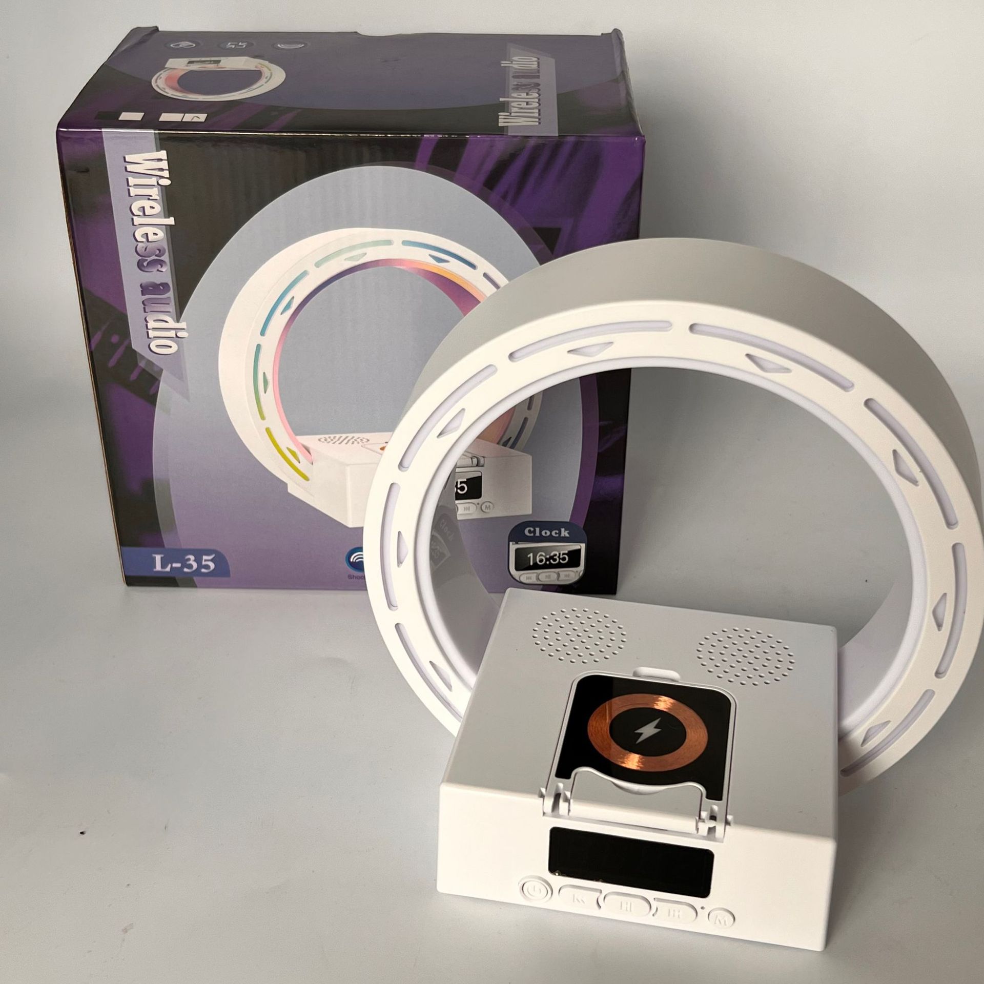 功能:蓝牙,读取TF和U盘,AUX,无线充,多彩RGB灯,时间显示,手机支架