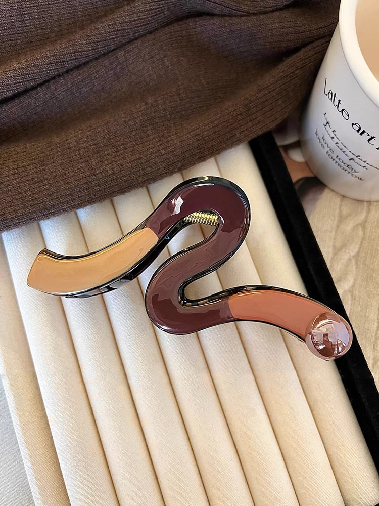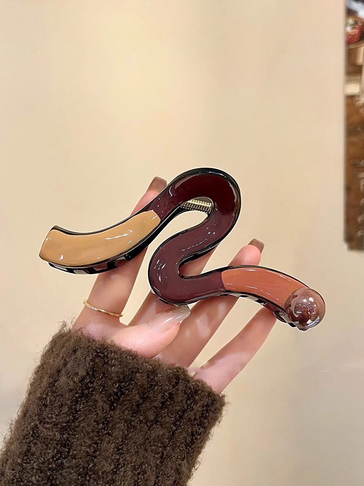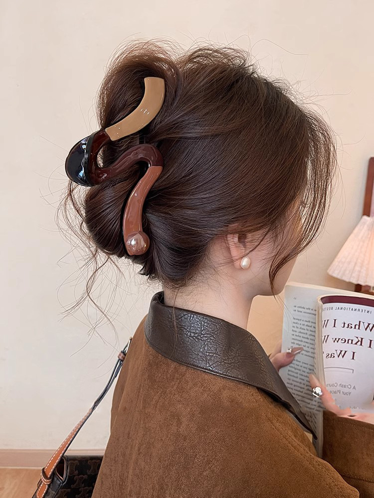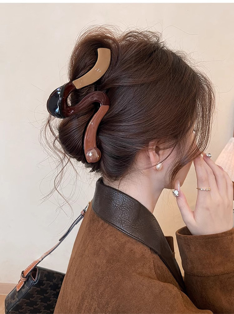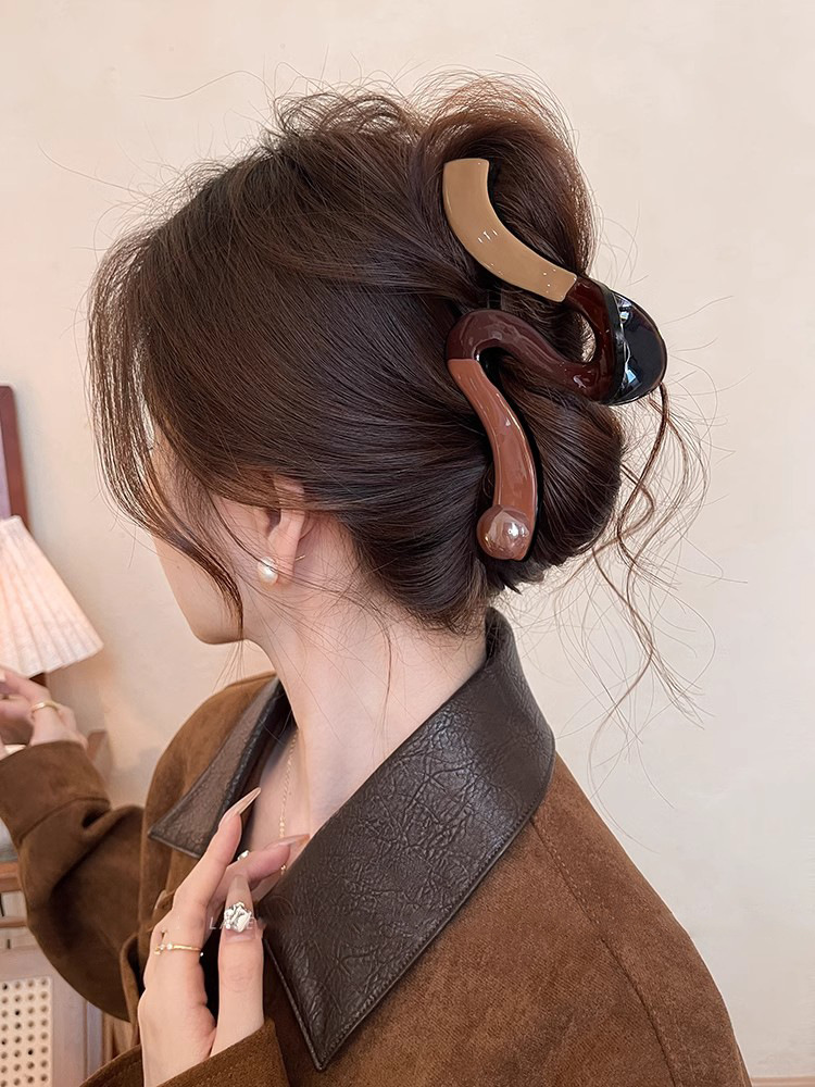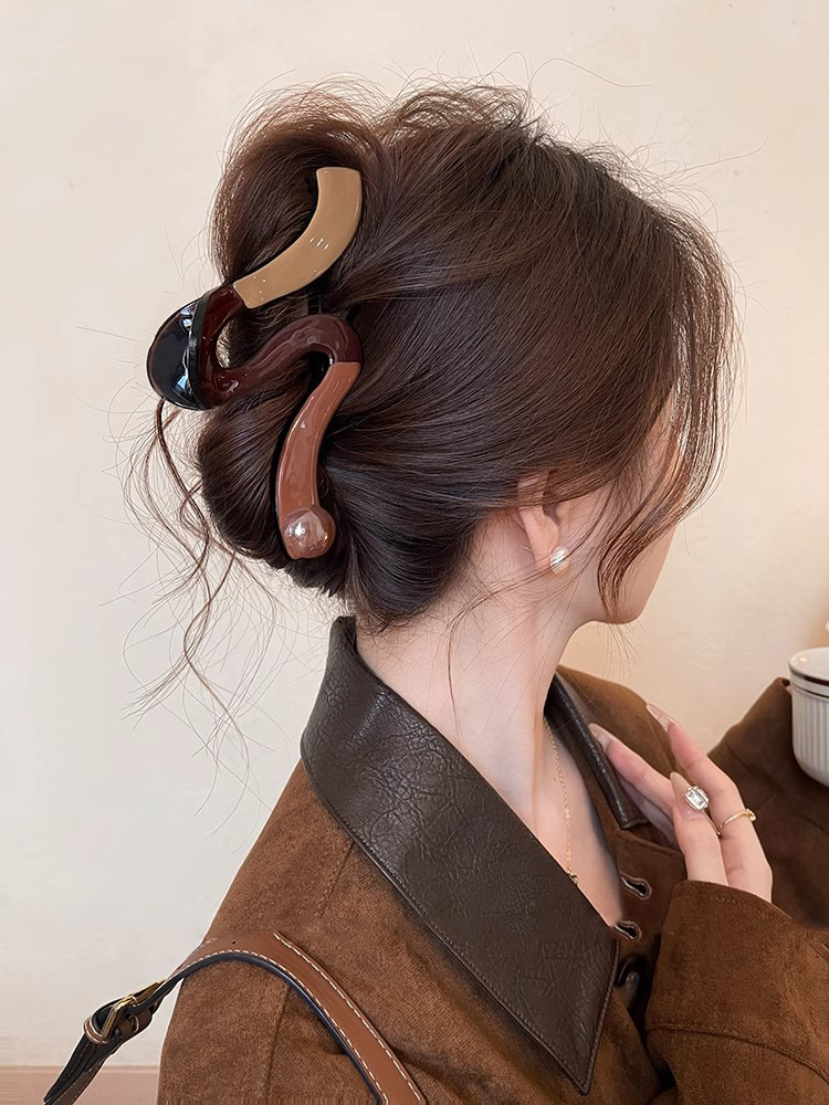 초콜릿 컬러 웨이브 그랩 클립 여성용 2024 새로운 하이 센스 상어 클립 헤어 클립 백 헤드 클립 헤어 액세서리 겨울