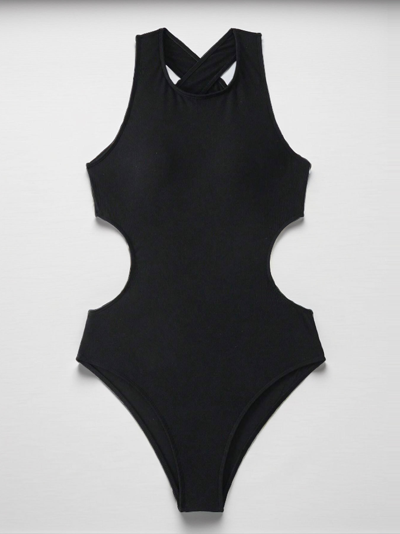 2024 새로운 여성 대외 무역 원피스 대형 수영복 섹시한 등이없는 보수적 인 단색 온천 레저 휴가 수영복