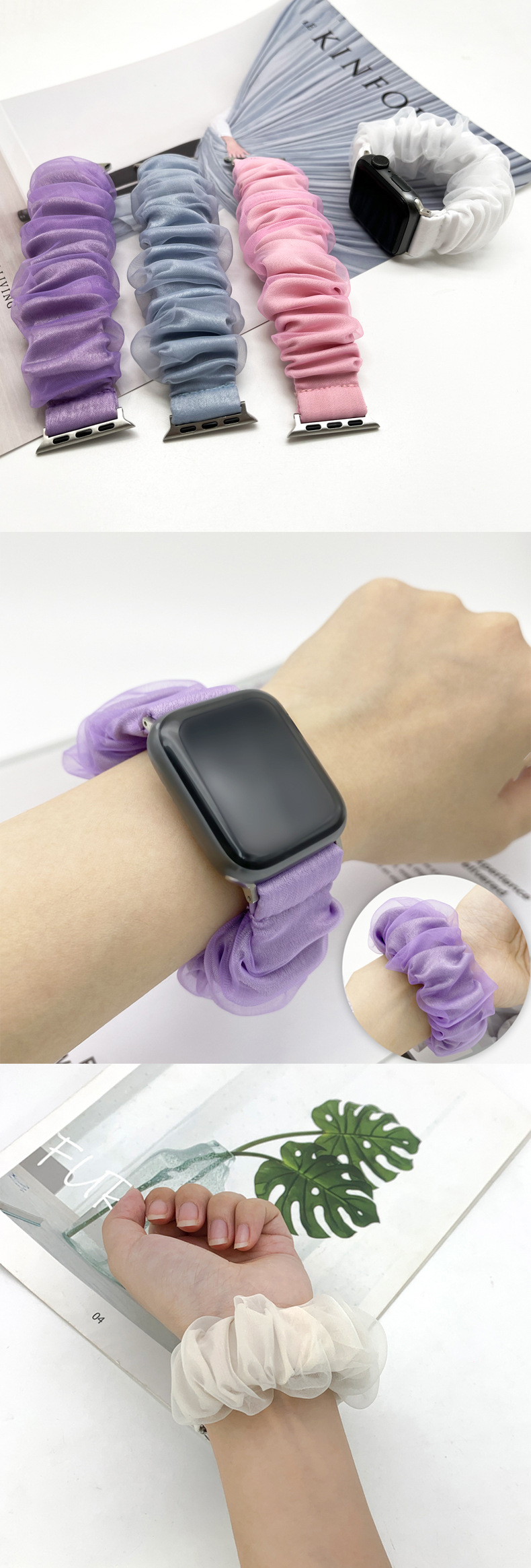 애플 watch8-1 삼성 패션 애플 스트랩을위한 새로운 Organza 더블 애플 스트랩스토어 가기