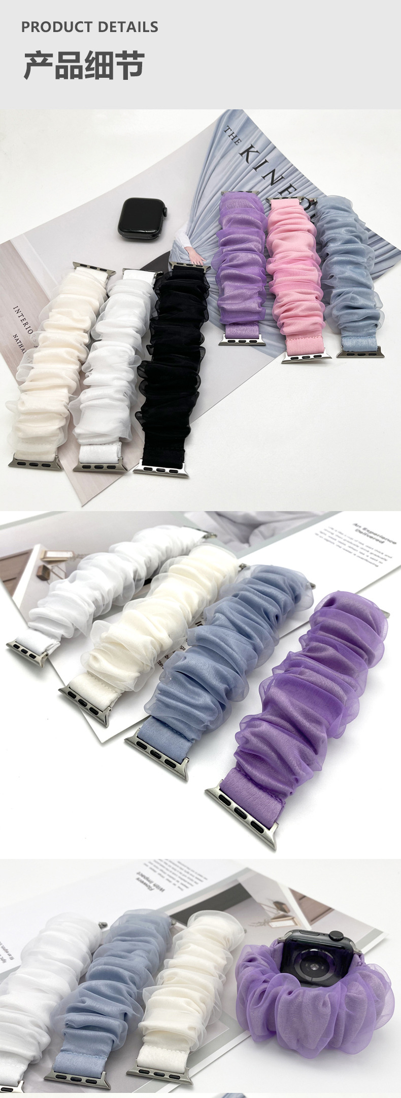 애플 watch8-1 삼성 패션 애플 스트랩을위한 새로운 Organza 더블 애플 스트랩