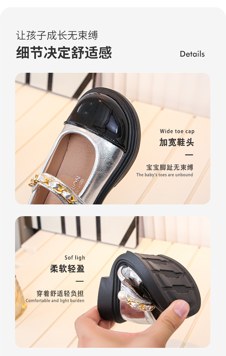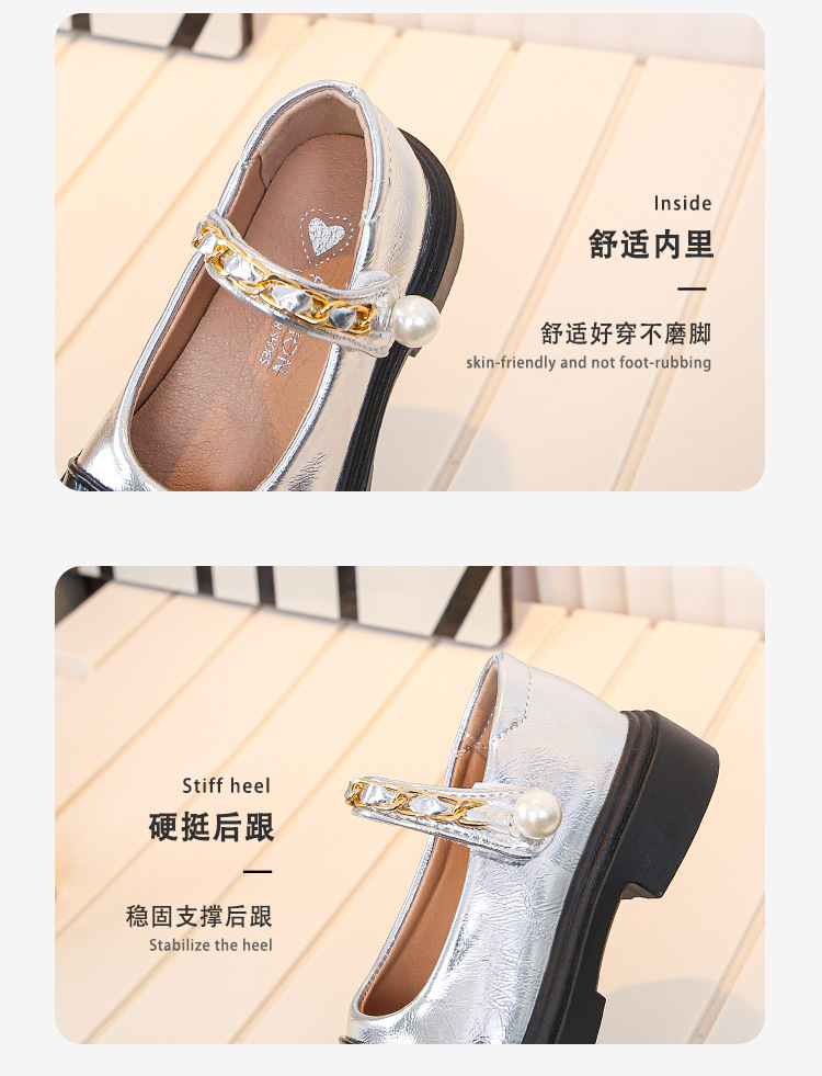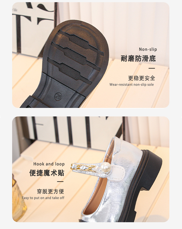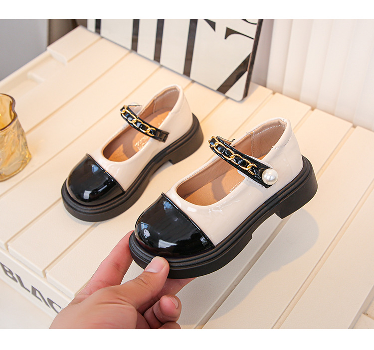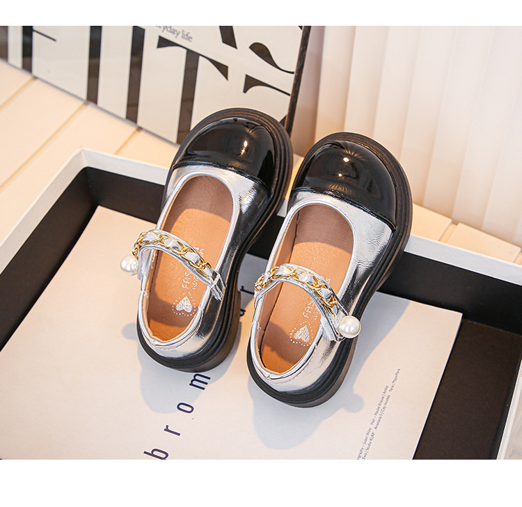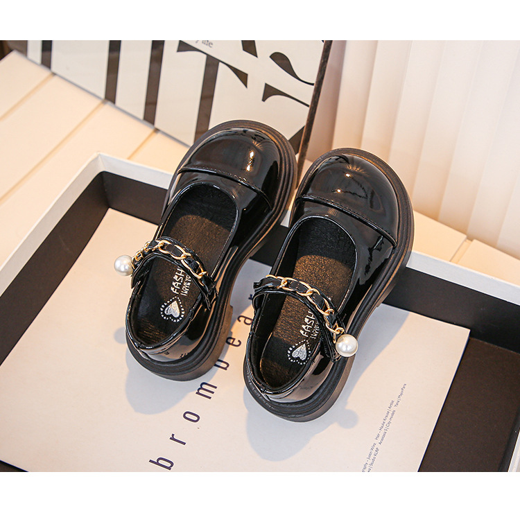 2024 년 가을을위한 소녀 영국 스타일의 작은 가죽 신발 트렌디 한 검은 학생 공연 신발 새로운 대형 어린이 미끄럼 방지 싱글 레이어 신발
