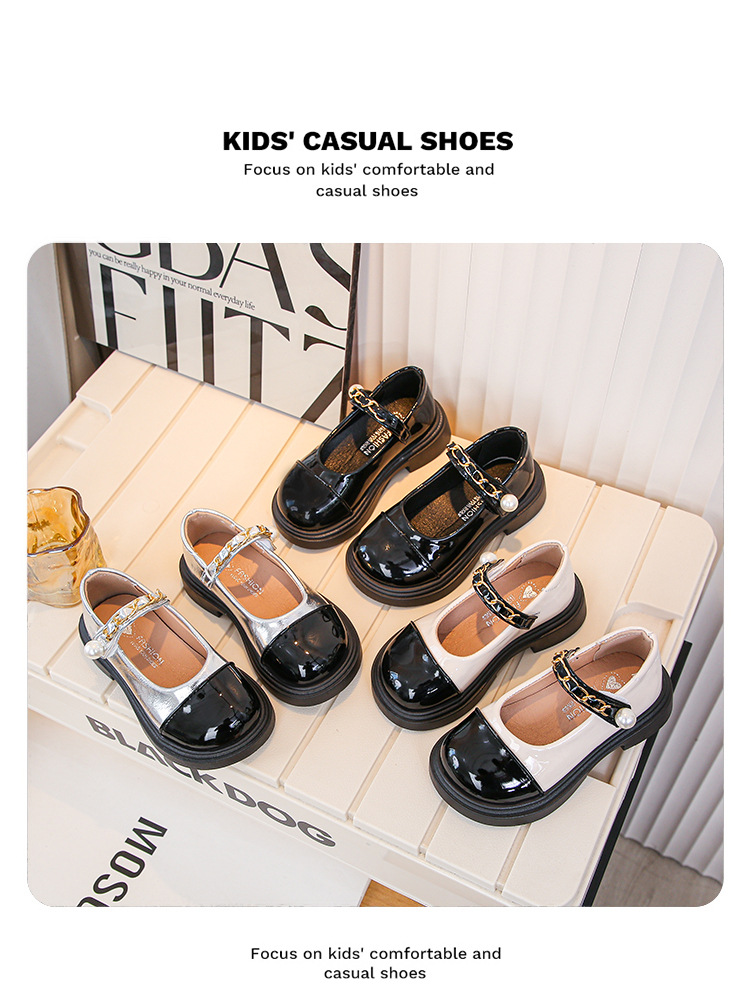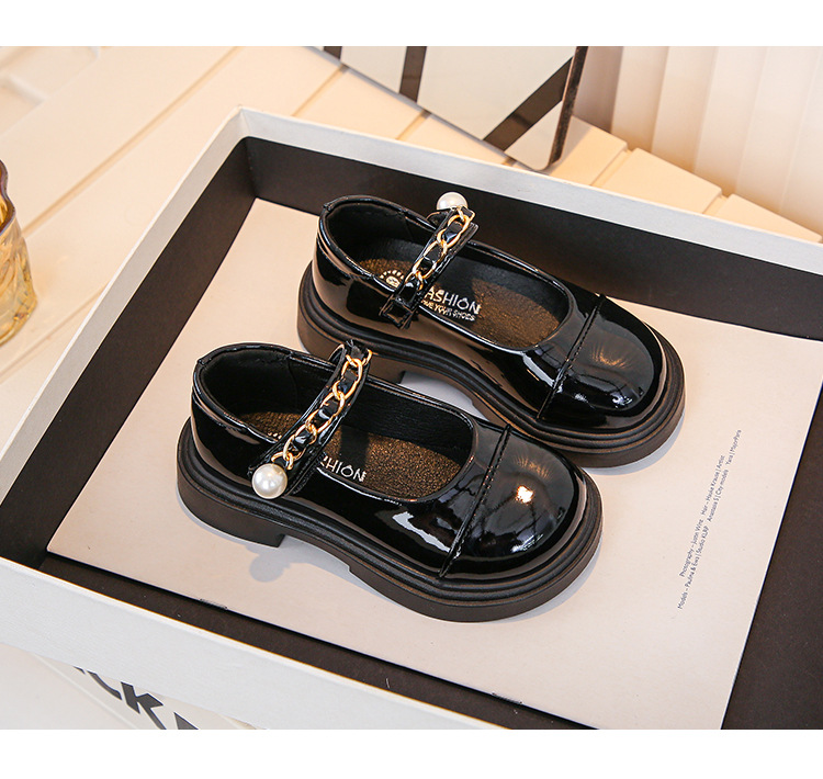 2024 년 가을을위한 소녀 영국 스타일의 작은 가죽 신발 트렌디 한 검은 학생 공연 신발 새로운 대형 어린이 미끄럼 방지 싱글 레이어 신발스토어 가기