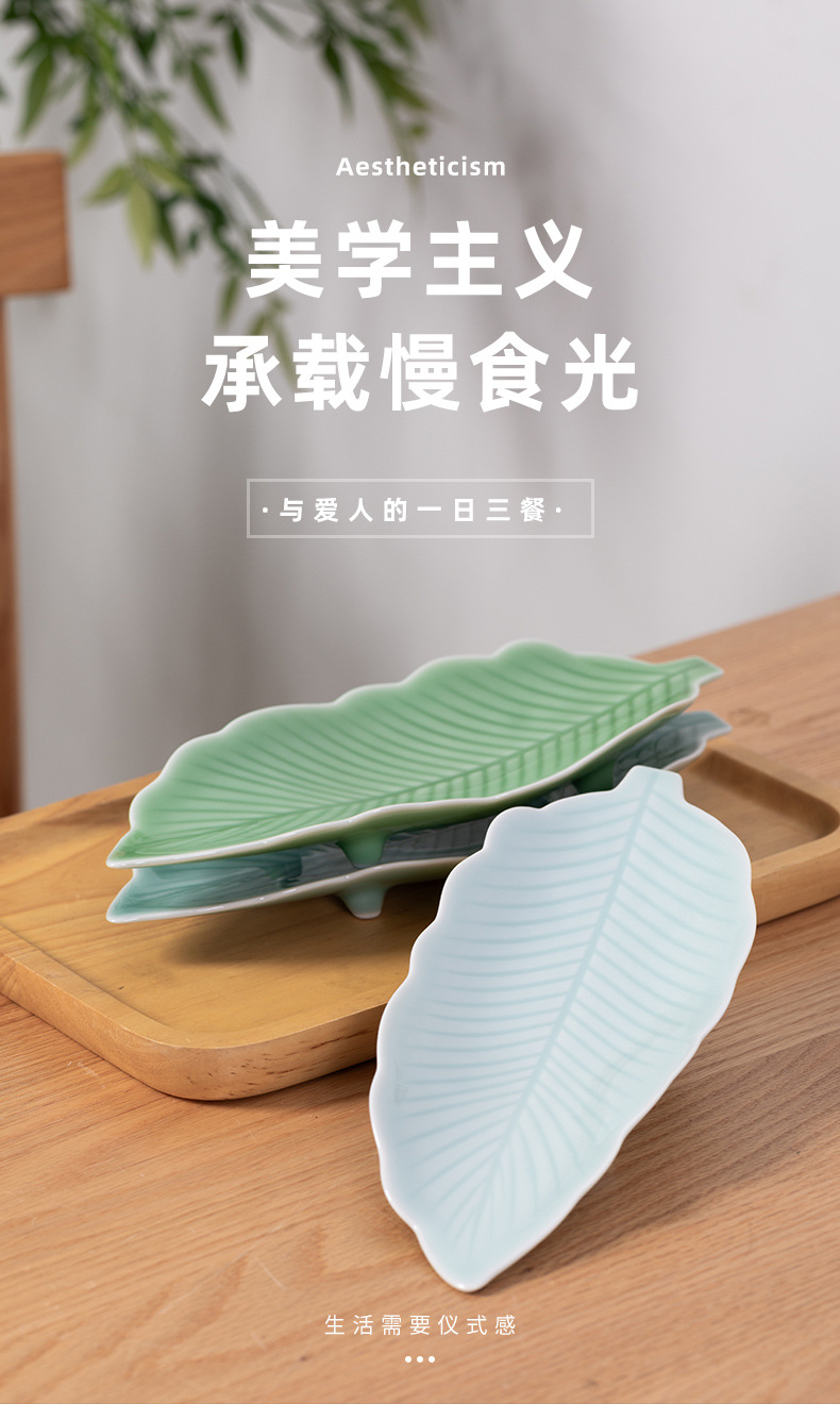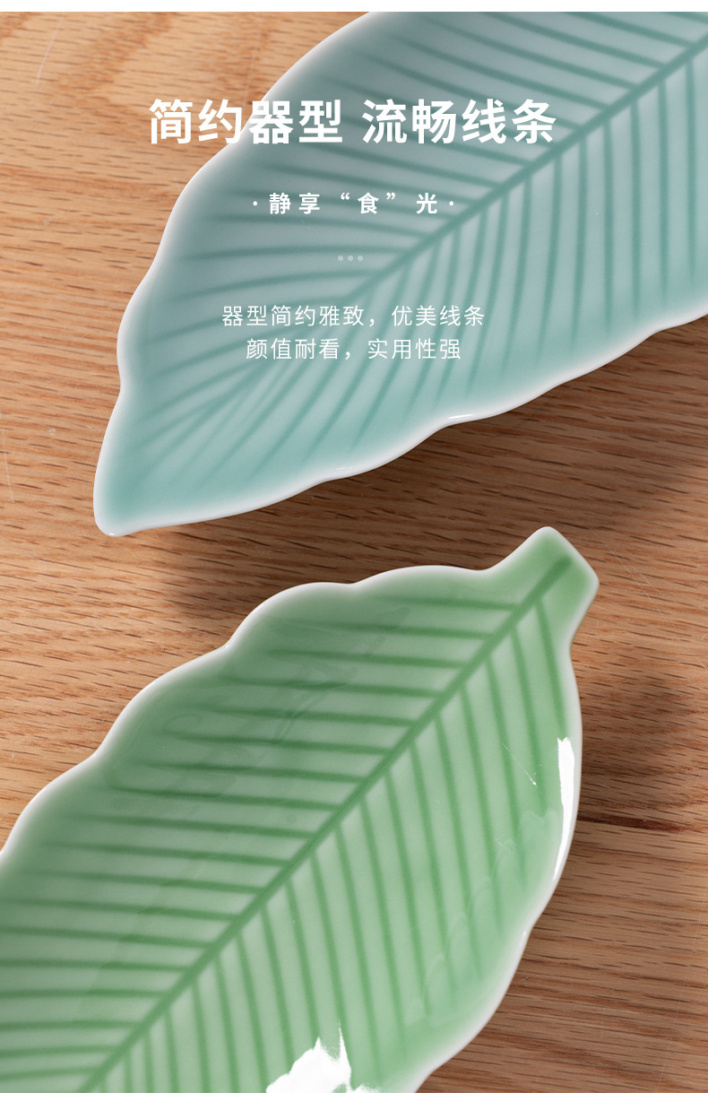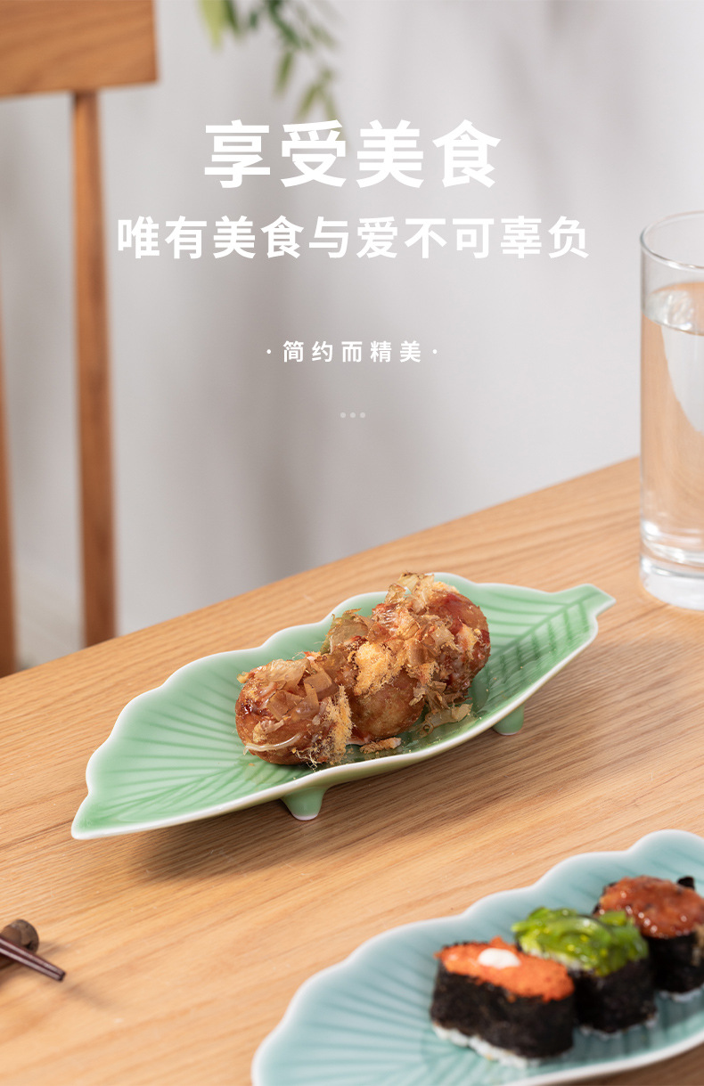 Longquan Celadon Plate 크리에이티브 스시 플레이트 조식 가정용 상업용 플레이트 잎 플레이트 콜드 요리 세라믹 식사 생선회 플레이트스토어 가기