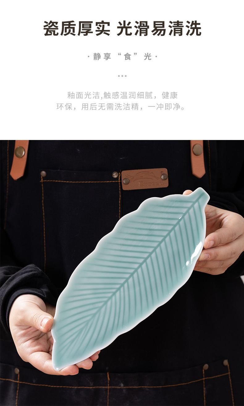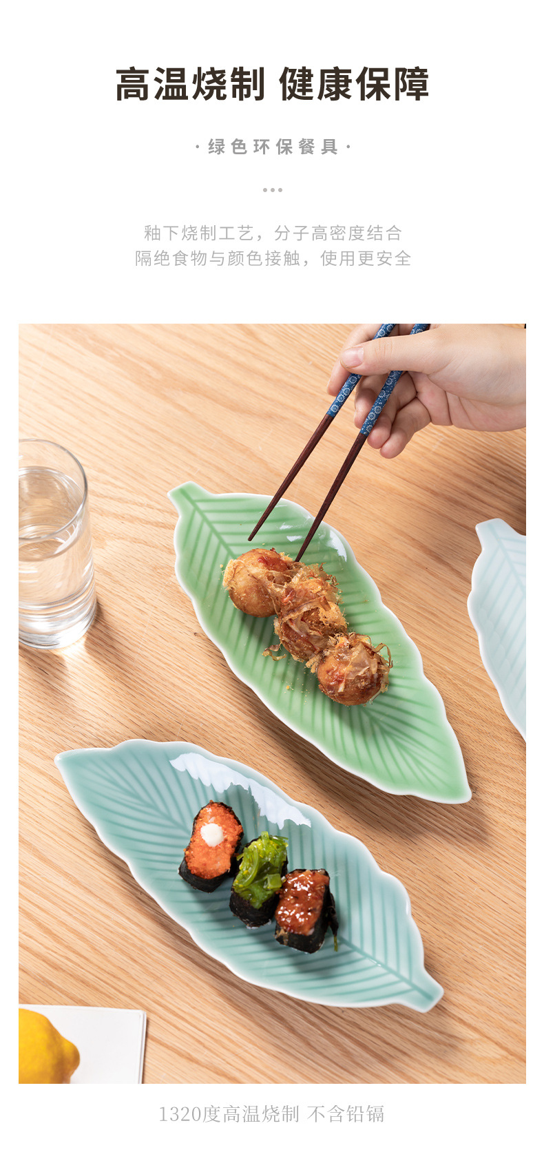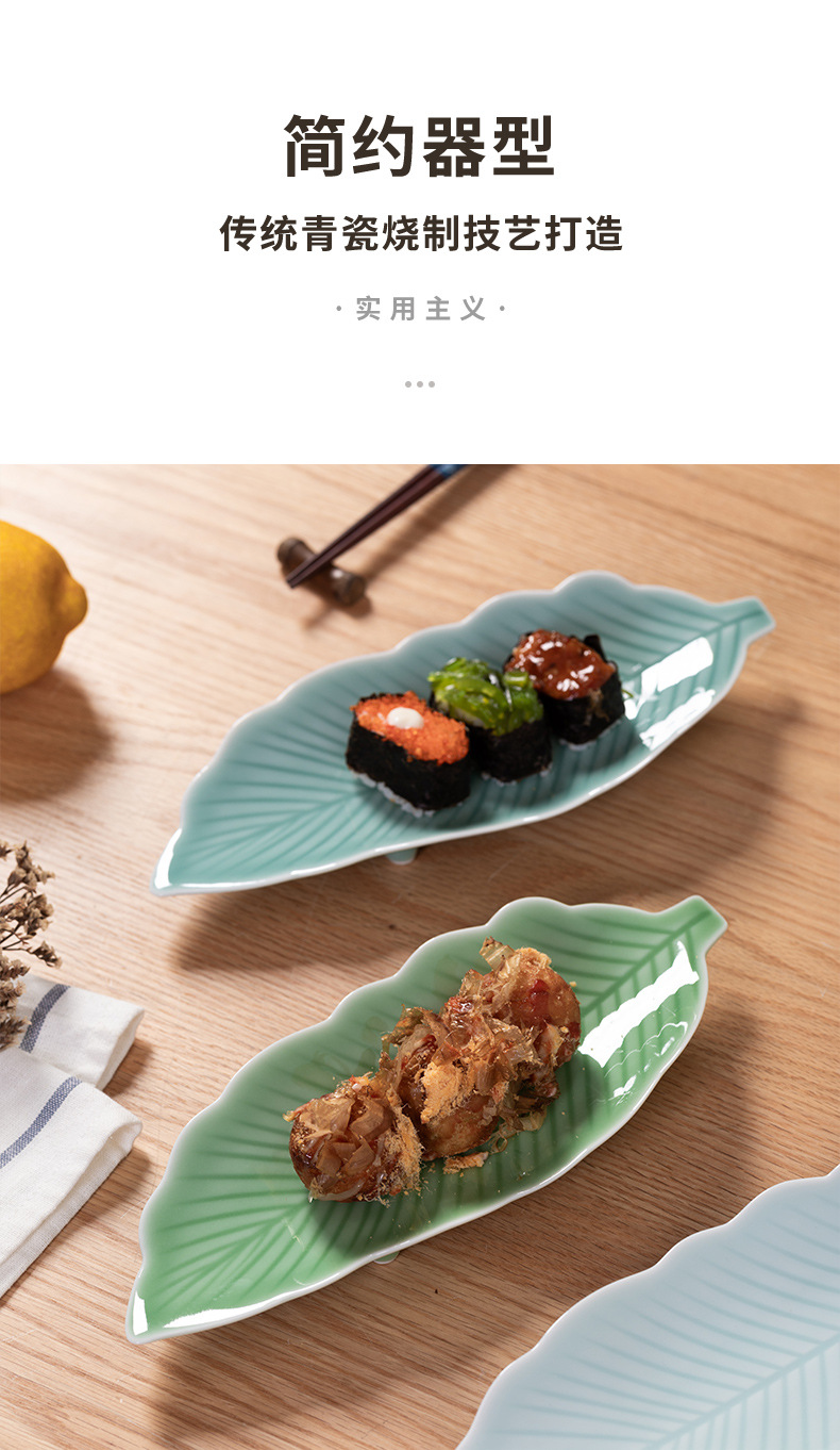 Longquan Celadon Plate 크리에이티브 스시 플레이트 조식 가정용 상업용 플레이트 잎 플레이트 콜드 요리 세라믹 식사 생선회 플레이트