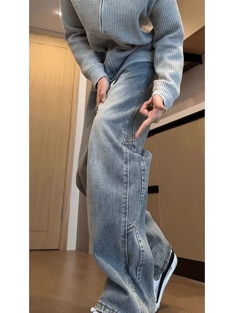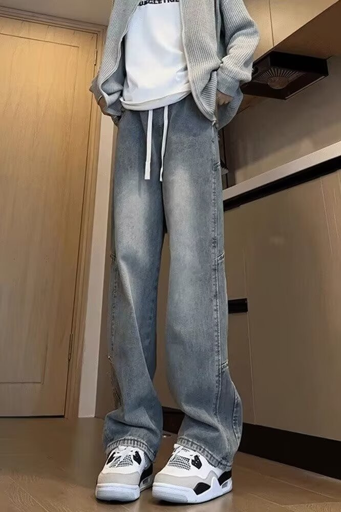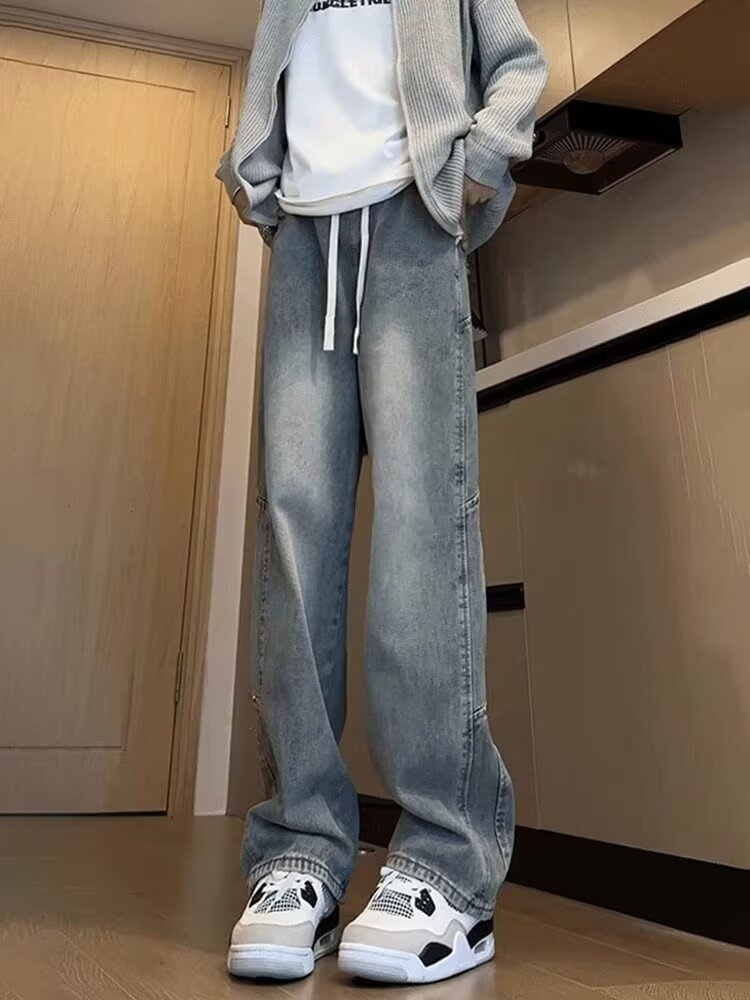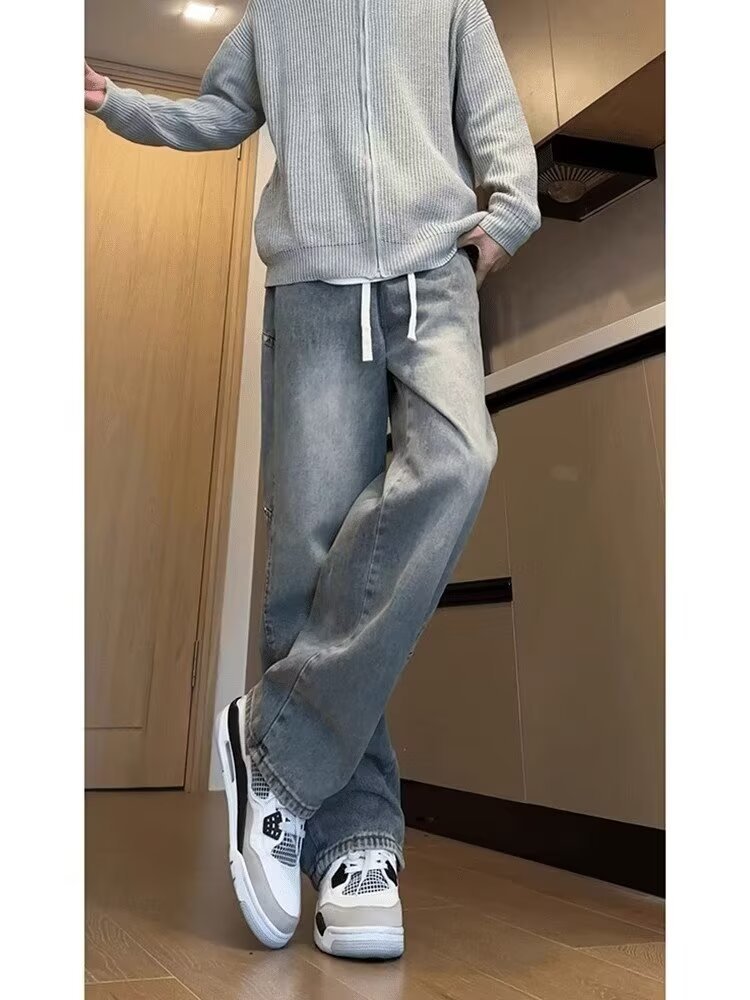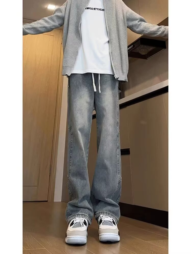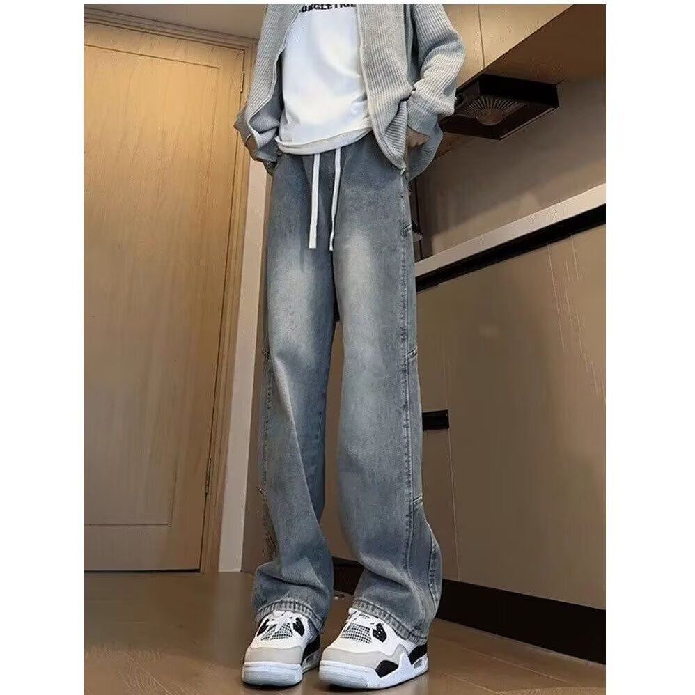 남자 스트레이트 레그 청바지 남자 2025 새로운 도착 남자 봄과 가을 미국 스타일 유행 브랜드 Ins 유행 느슨한 캐주얼 바지스토어 가기
