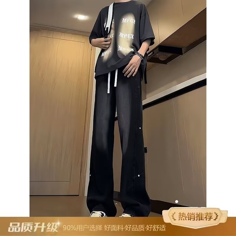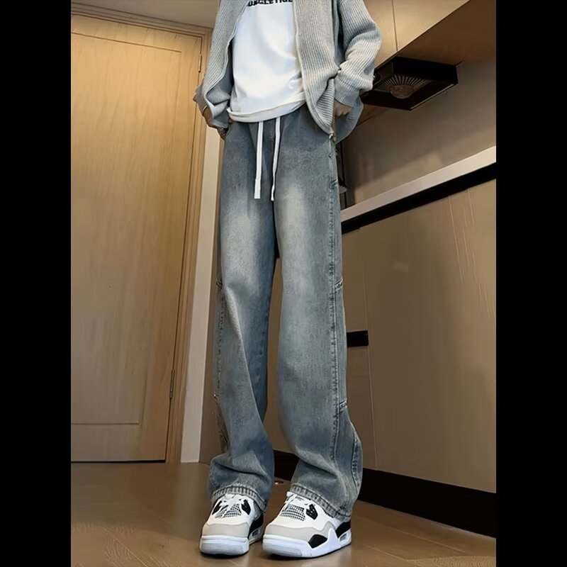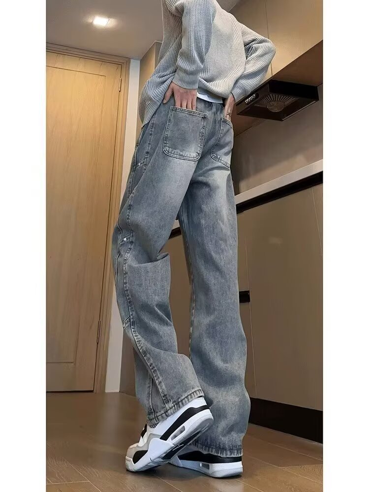 남자 스트레이트 레그 청바지 남자 2025 새로운 도착 남자 봄과 가을 미국 스타일 유행 브랜드 Ins 유행 느슨한 캐주얼 바지