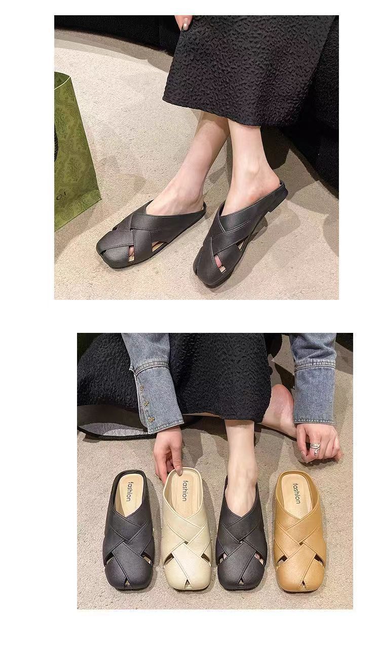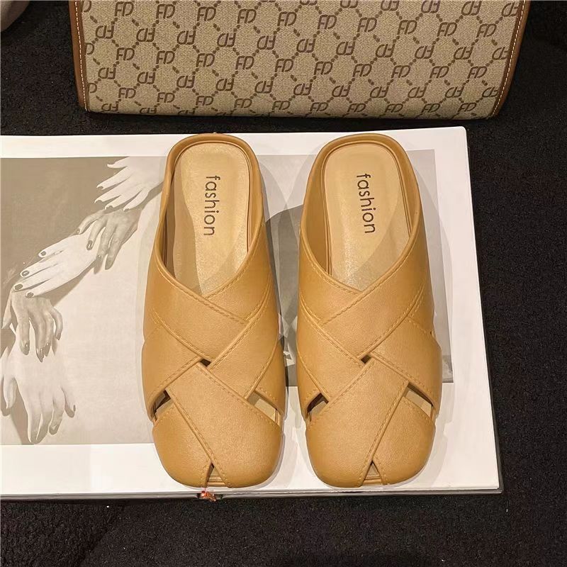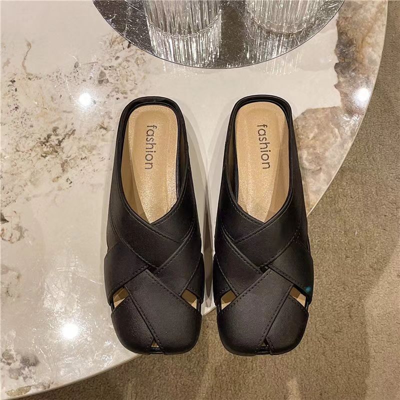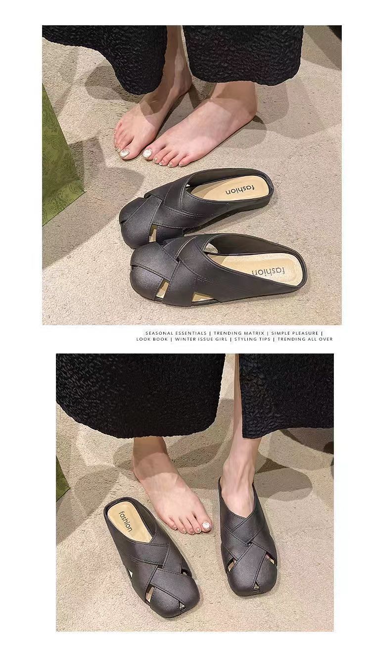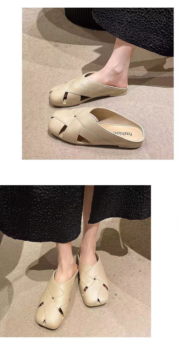2024년 여름 신상 게으른 여성용 반슬리퍼, 패셔너블한 플랫솔 인터넷 연예인 로마 샌들, 여성용 아우터 슈즈스토어 가기