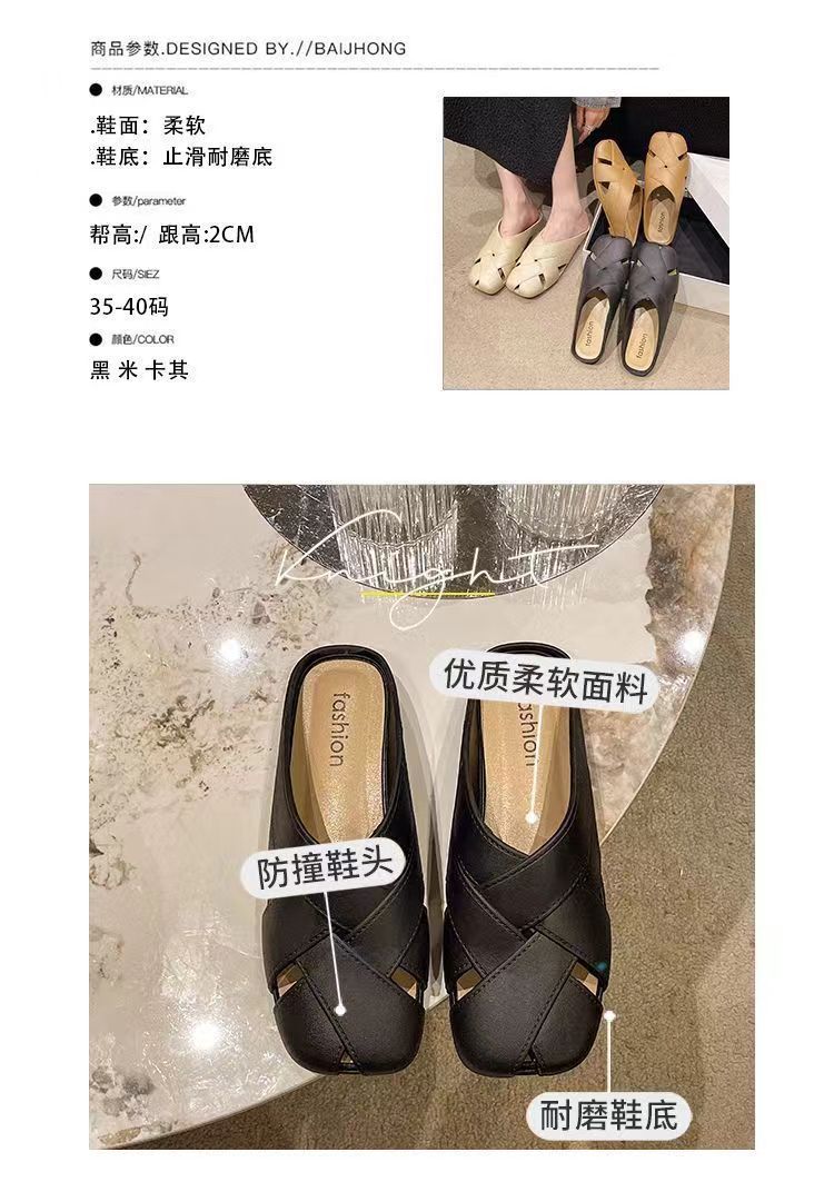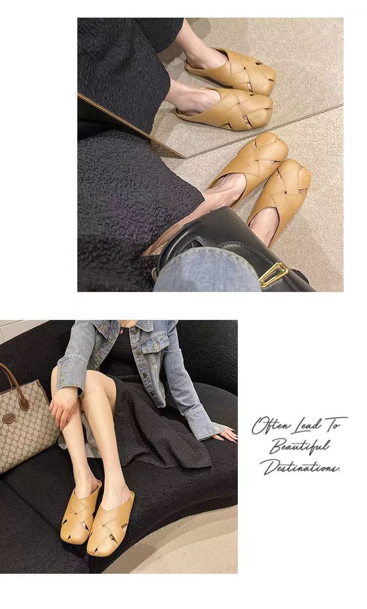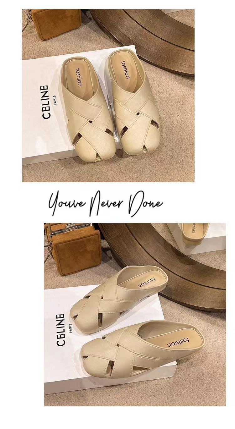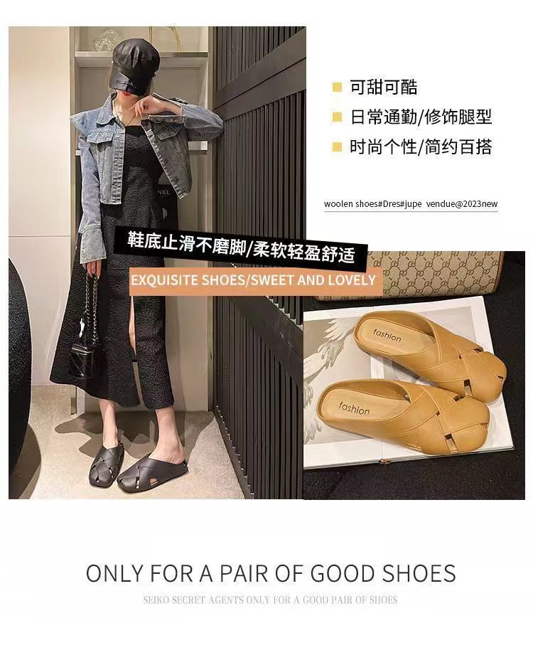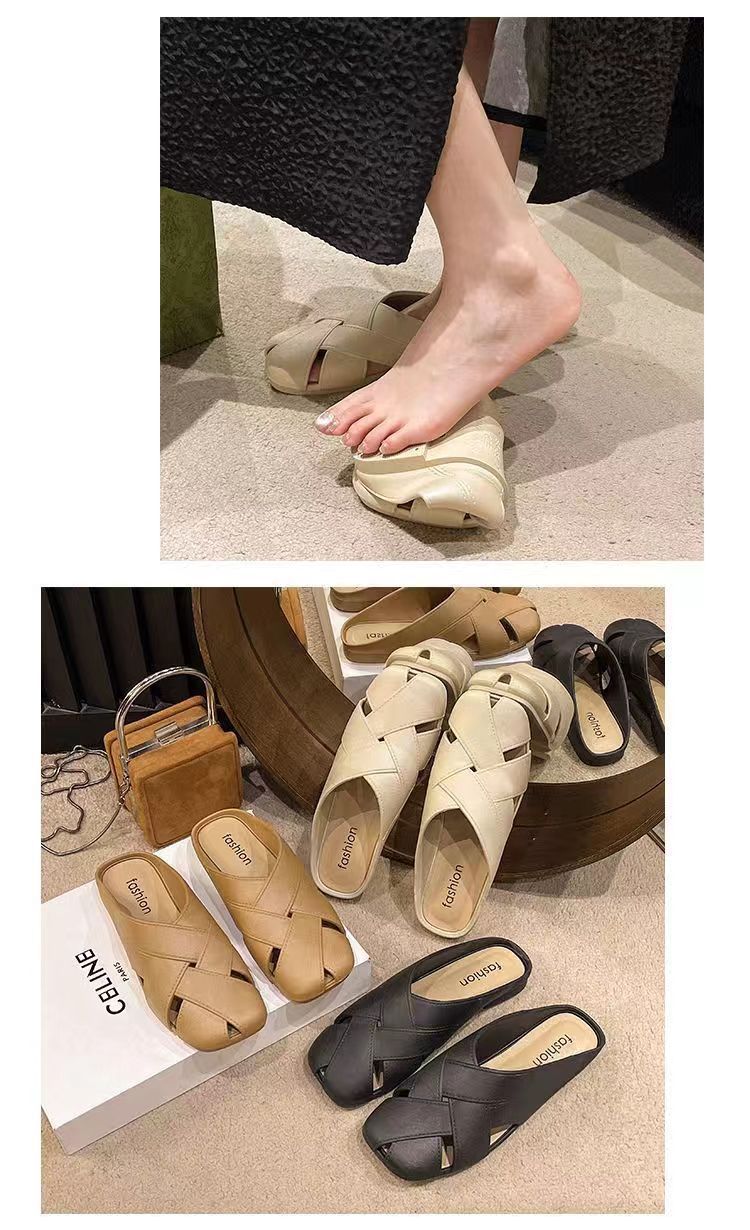 2024년 여름 신상 게으른 여성용 반슬리퍼, 패셔너블한 플랫솔 인터넷 연예인 로마 샌들, 여성용 아우터 슈즈스토어 가기