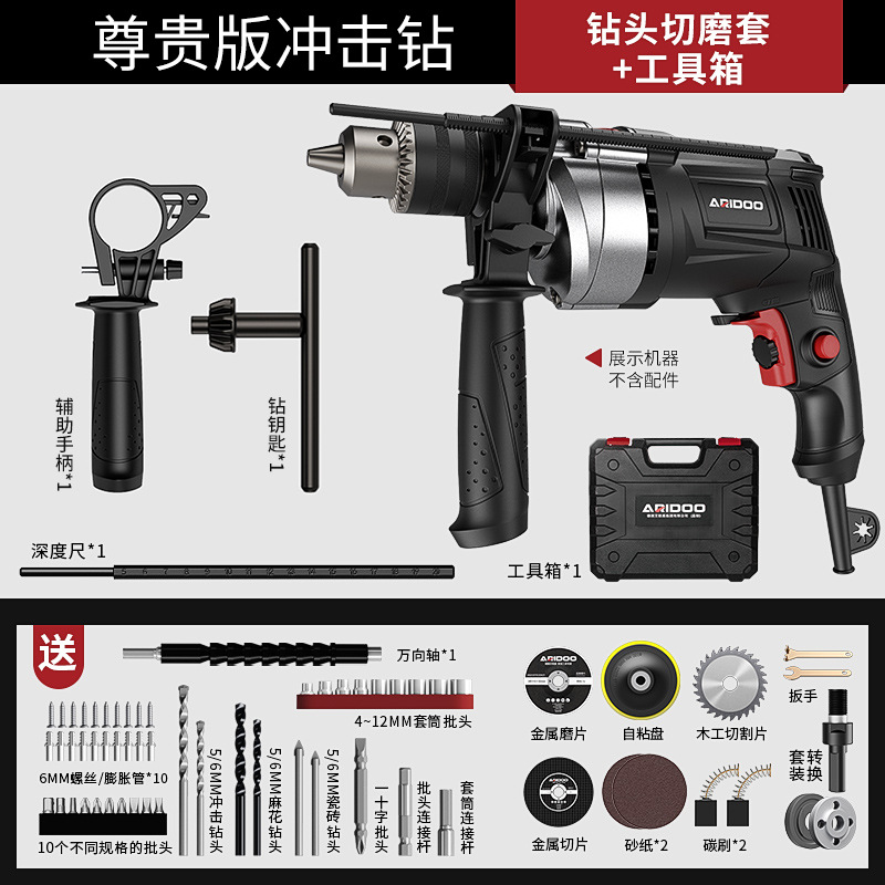 • 프리미엄 임팩트 드릴 + 드릴 비트 커팅 및 그라인딩 세트 - 플라스틱 상자