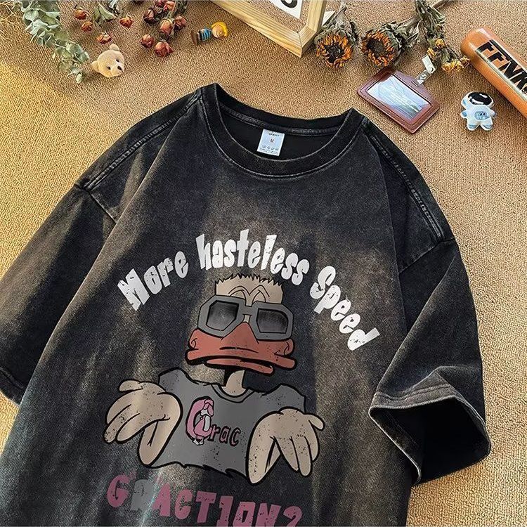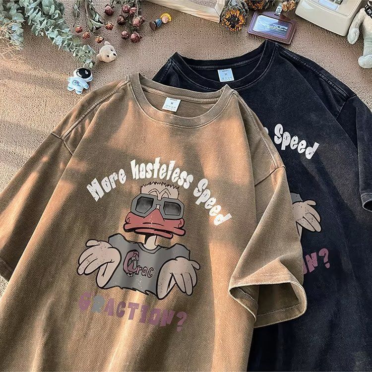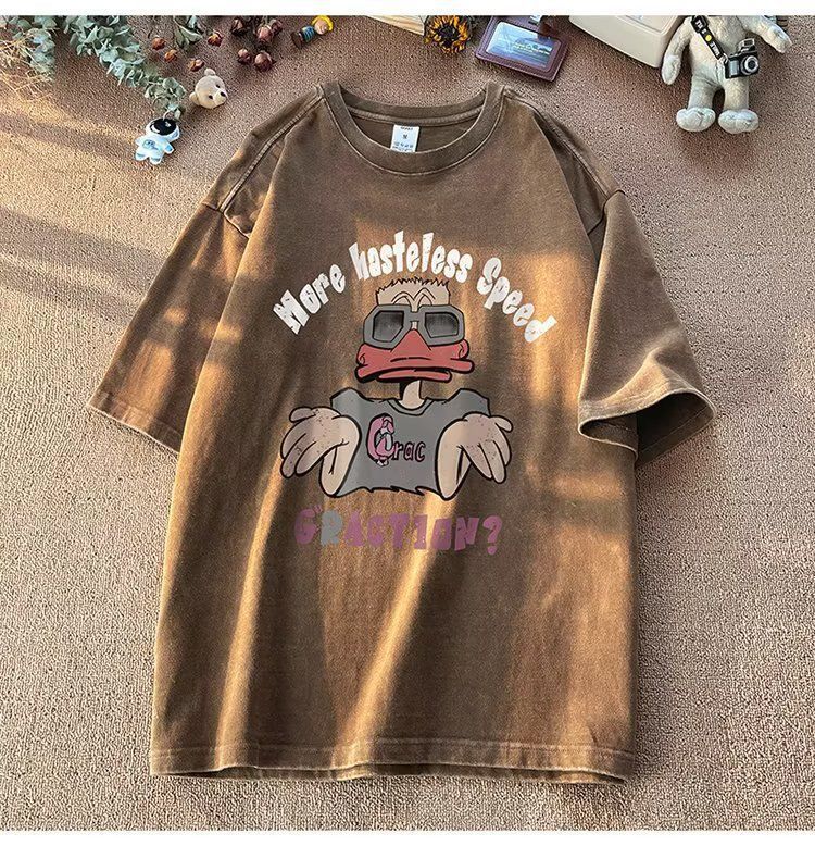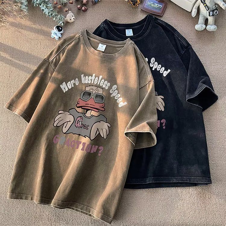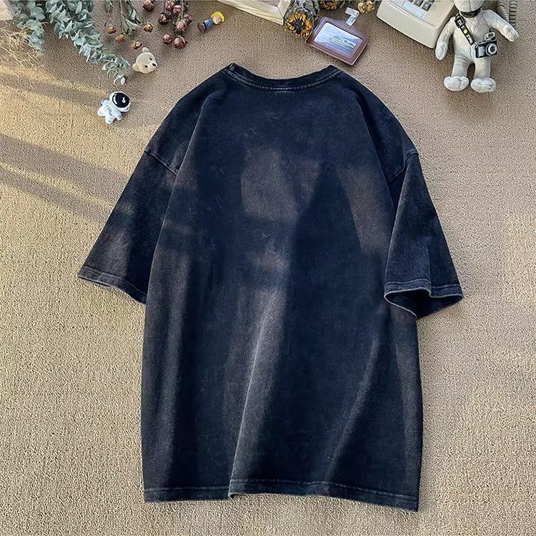 2025 아메리칸 스타일 트렌디 브랜드 헤비 반팔 티셔츠 남성용 여름 세탁 가능한 올드 패셔너블 레트로 하이 스트리트 루즈 반소매 티셔츠스토어 가기