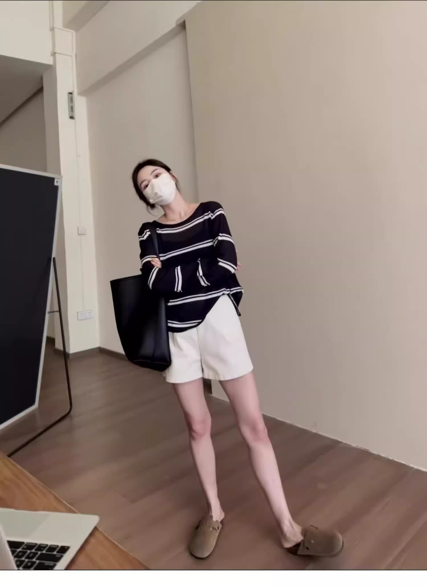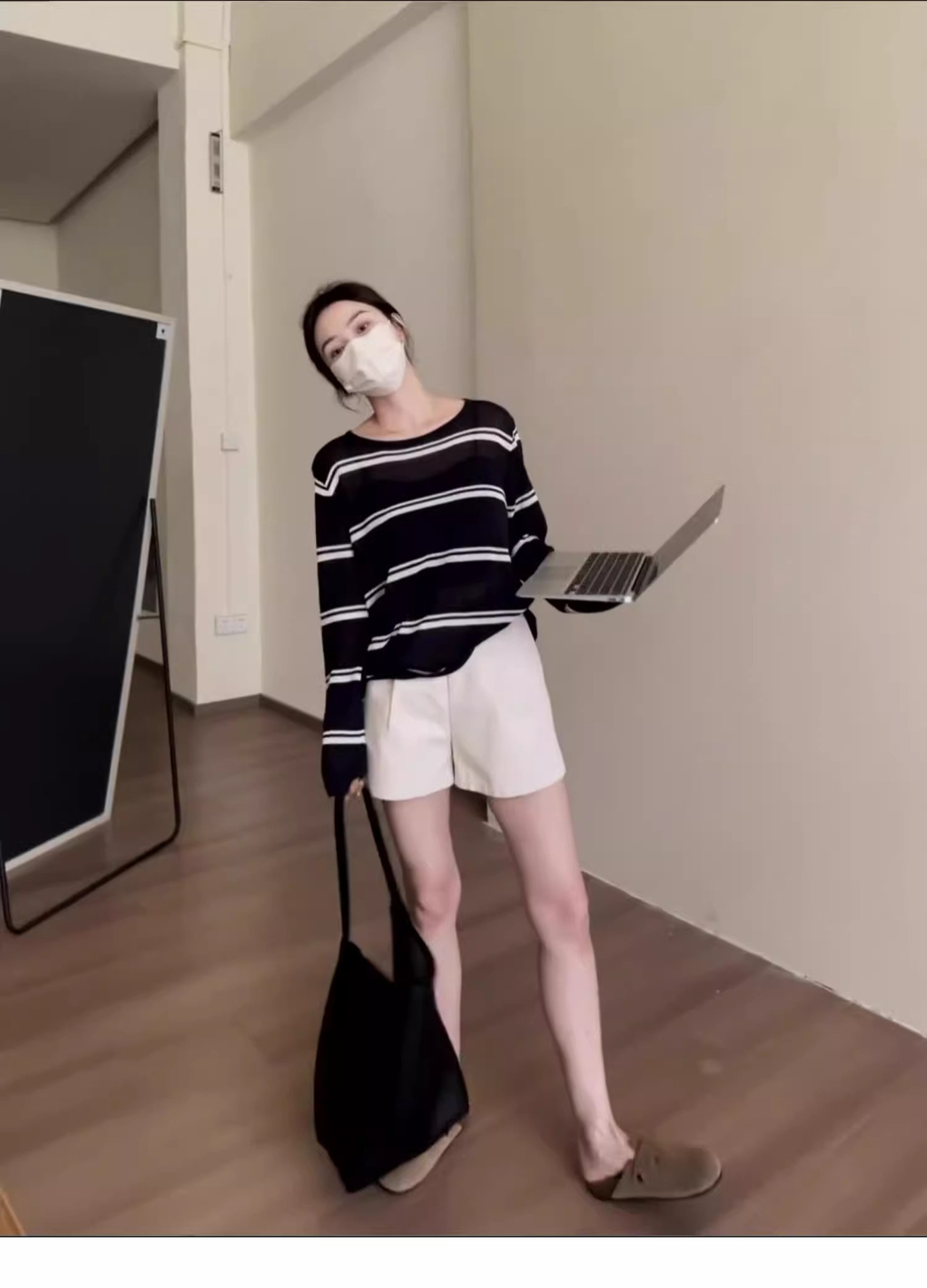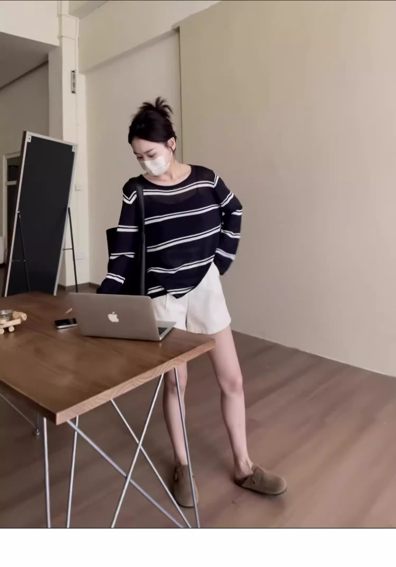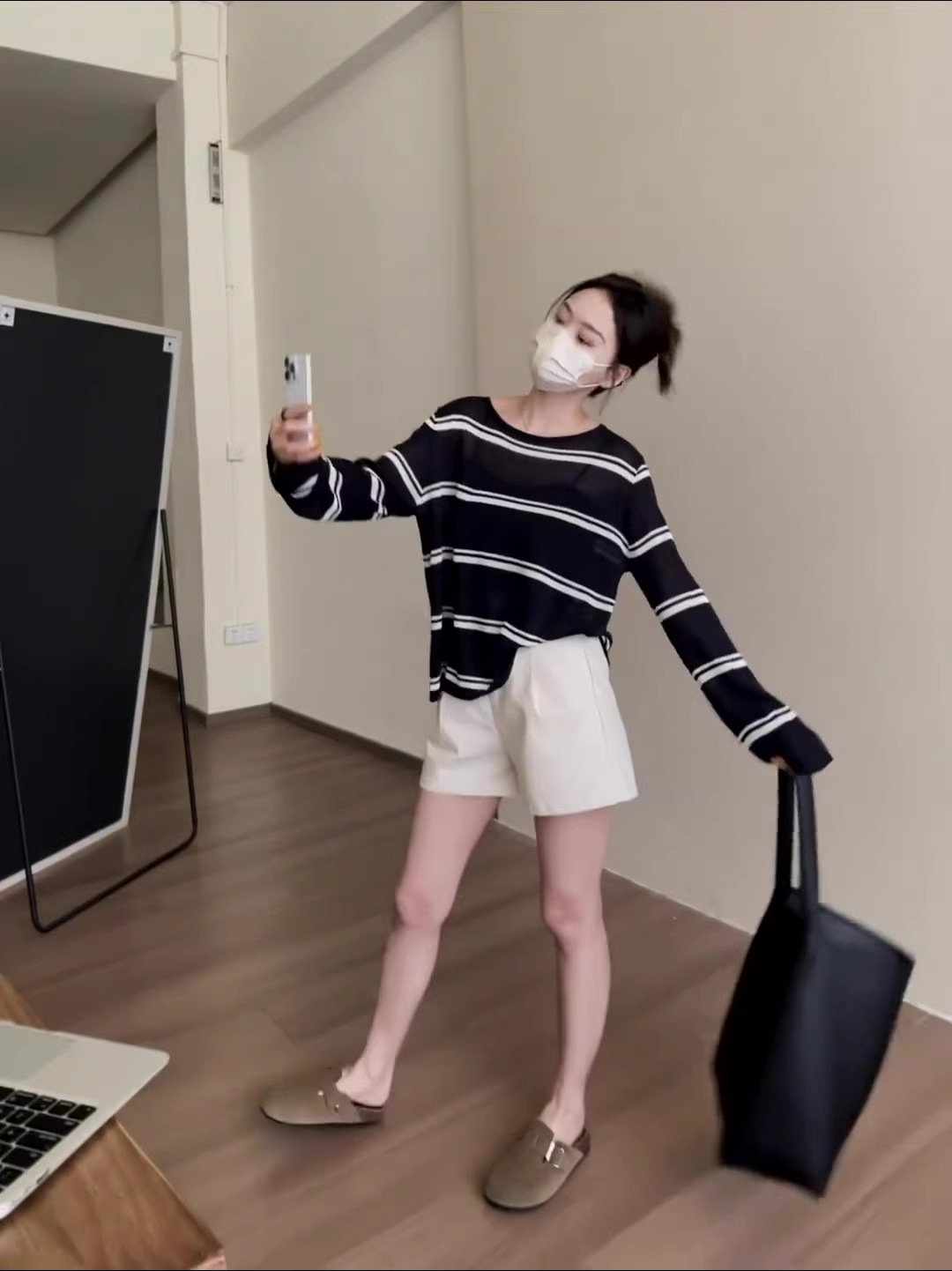 한국식 줄무늬 선스크린 긴팔 티셔츠 블라우스 여성용 여름 백 할로우 작은 셔츠 외부 어깨 탑 얇은 아이스 실크 탑스토어 가기