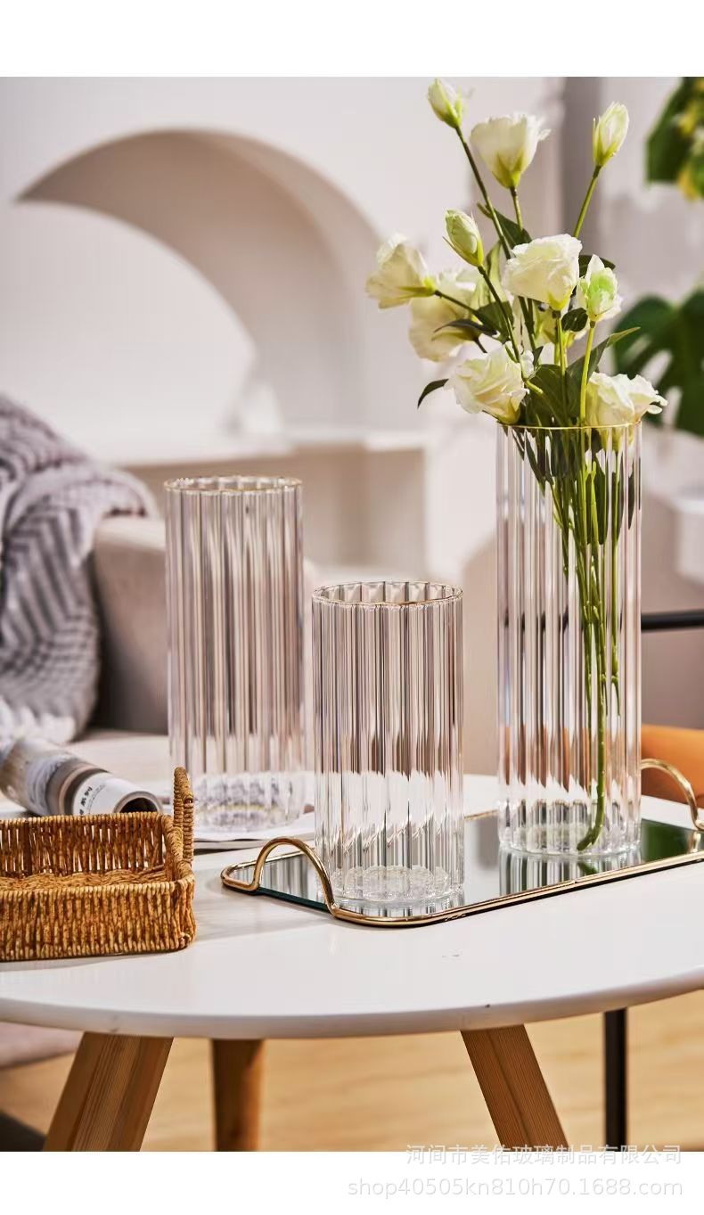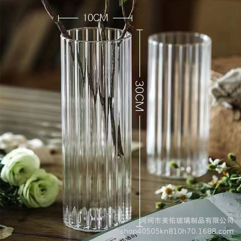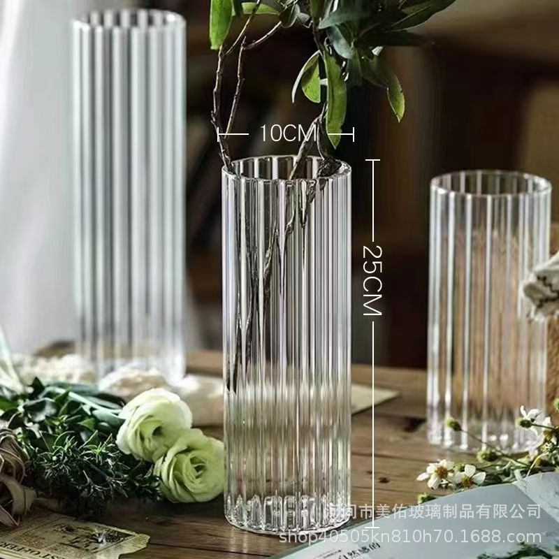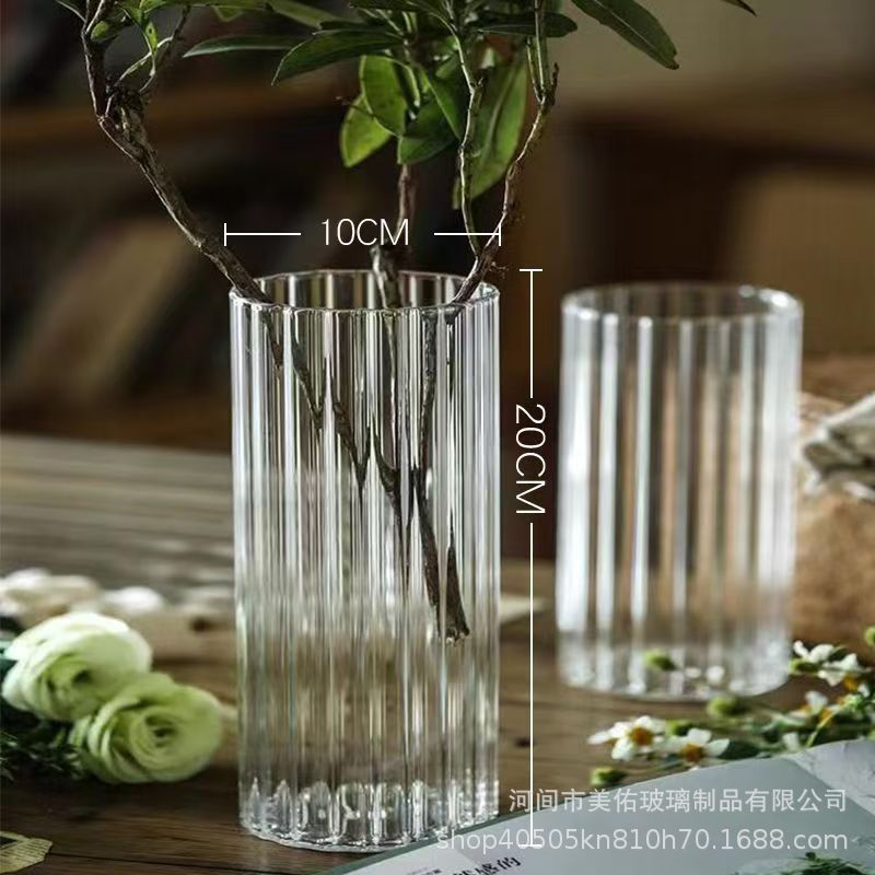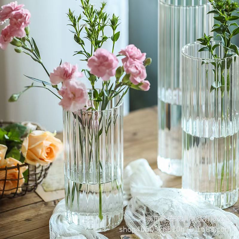 수직 줄무늬 꽃병 작은 신선한 직선 창조적 인 유리 투명한 수경 꽃 장식품 장식 유리 꽃병
