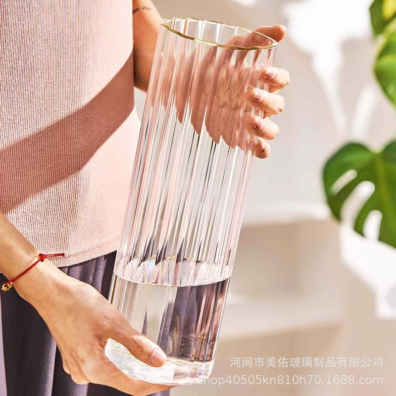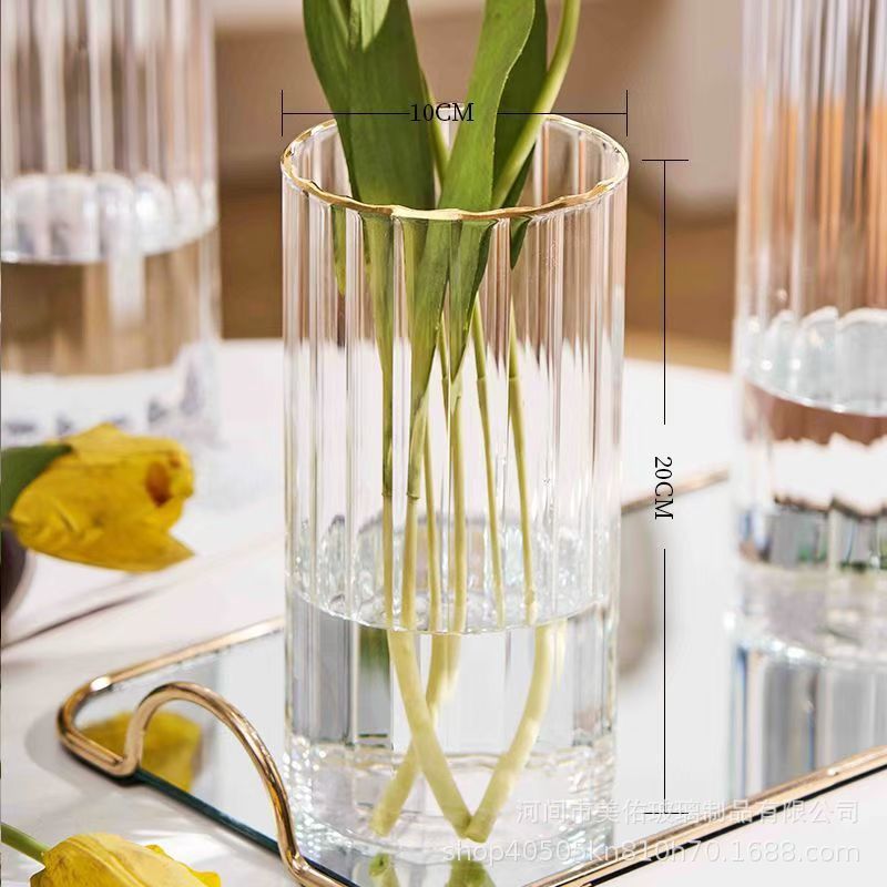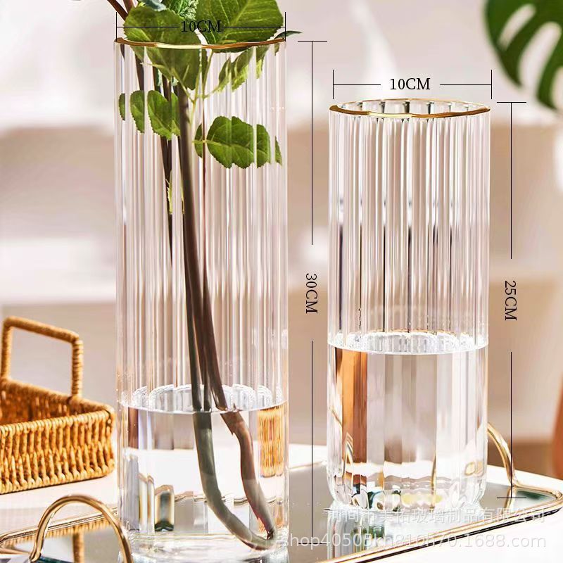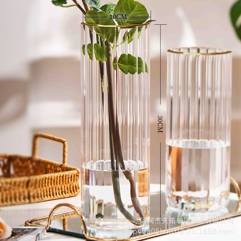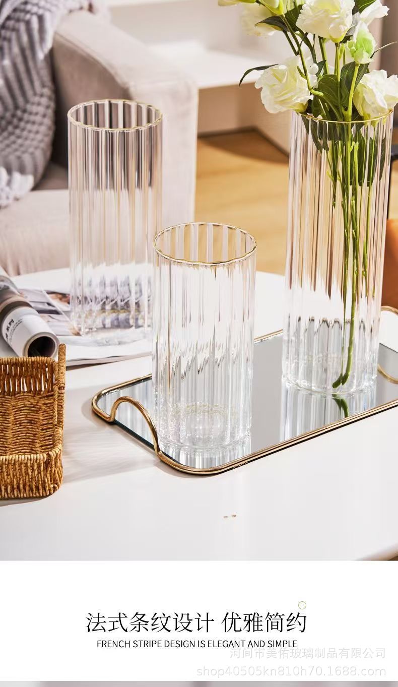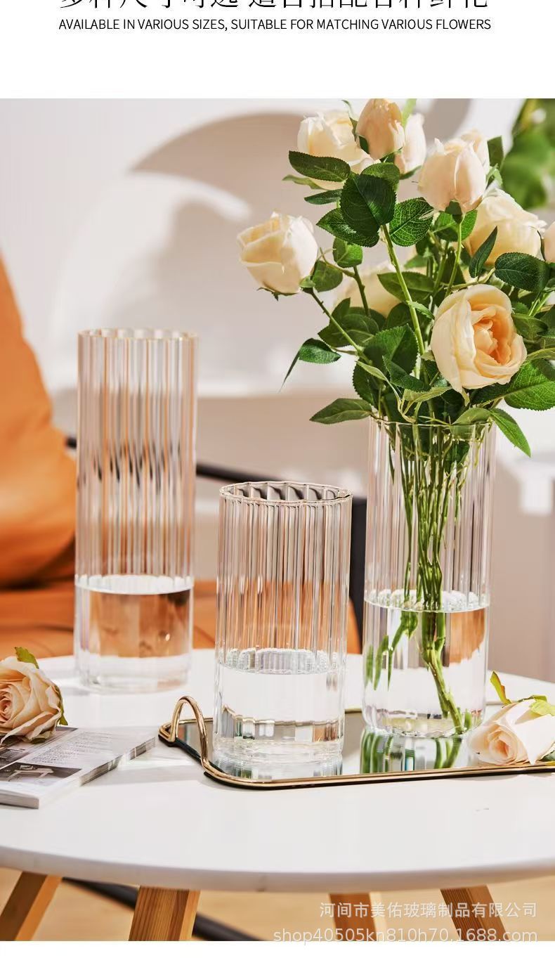 수직 줄무늬 꽃병 작은 신선한 직선 창조적 인 유리 투명한 수경 꽃 장식품 장식 유리 꽃병