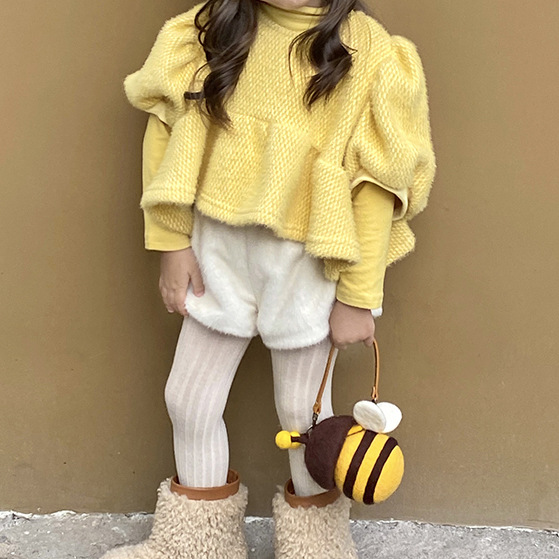 가을과 겨울 소녀 귀여운 봉제 흰 토끼 꼬리 반바지 아기 새로운 세련된 유행 기모 올 매치 캐주얼 바지스토어 가기