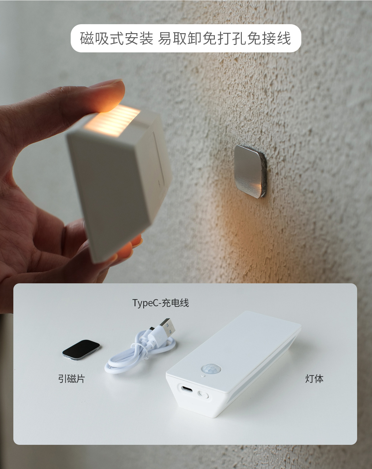 무선 충전식 LED 센서 벽등, 침실 침대 옆 계단 발광등, 복도 캐비닛 조명, 원목스토어 가기